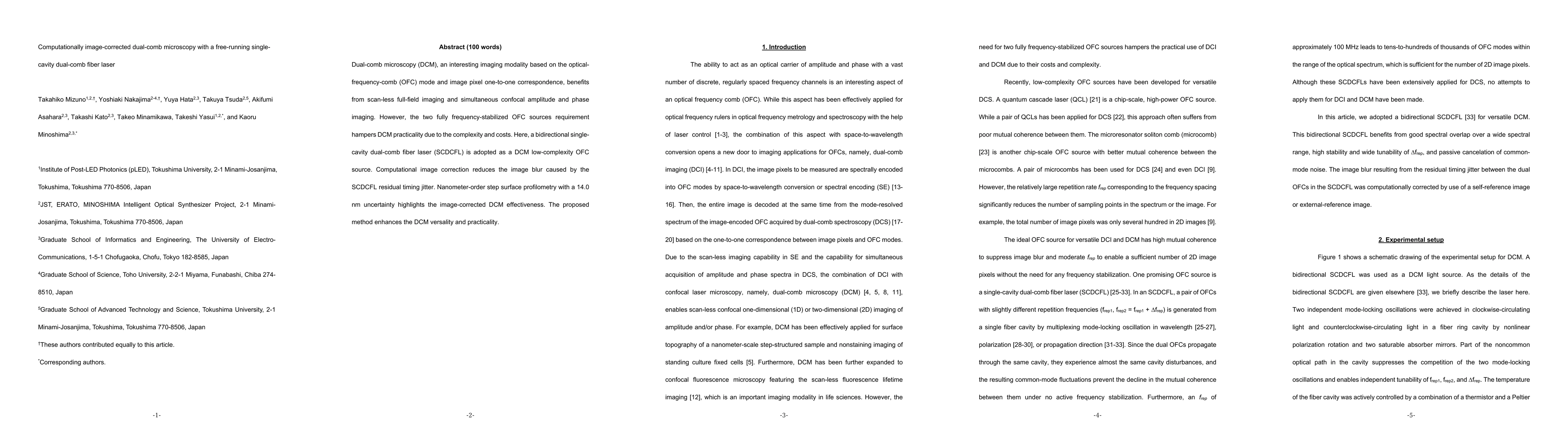 This paper proposes a low-complexity single-cavity dual-comb fiber laser for dual-comb microscopy, employing computational image correction to address residual timing jitter and achieve nanometer-order surface profilometry with 14.0 nm uncertainty, enhancing the practicality and versatility of the technique.