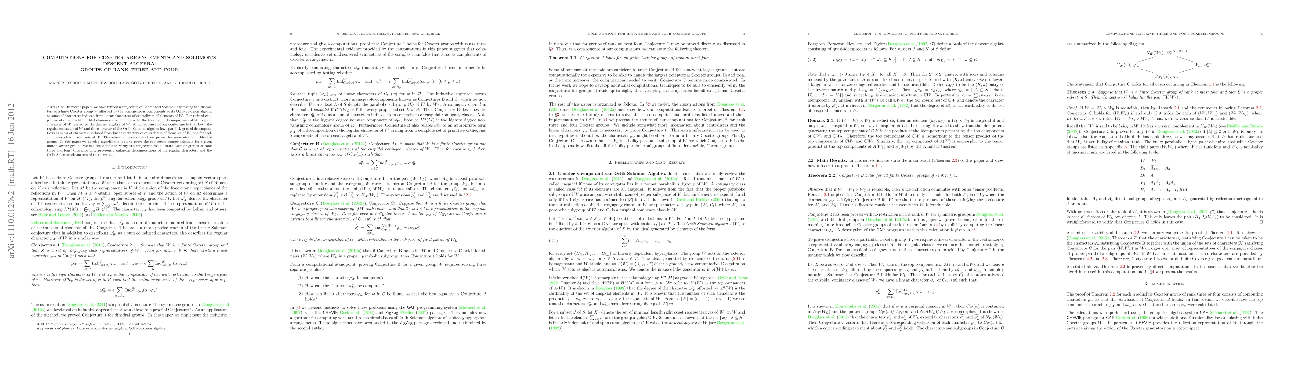 This paper refines a conjecture linking Coxeter group characters with their Orlik-Solomon algebra and descent algebra, proving it computationally for Coxeter groups of ranks three and four, and providing new decompositions of their regular and Orlik-Solomon characters.