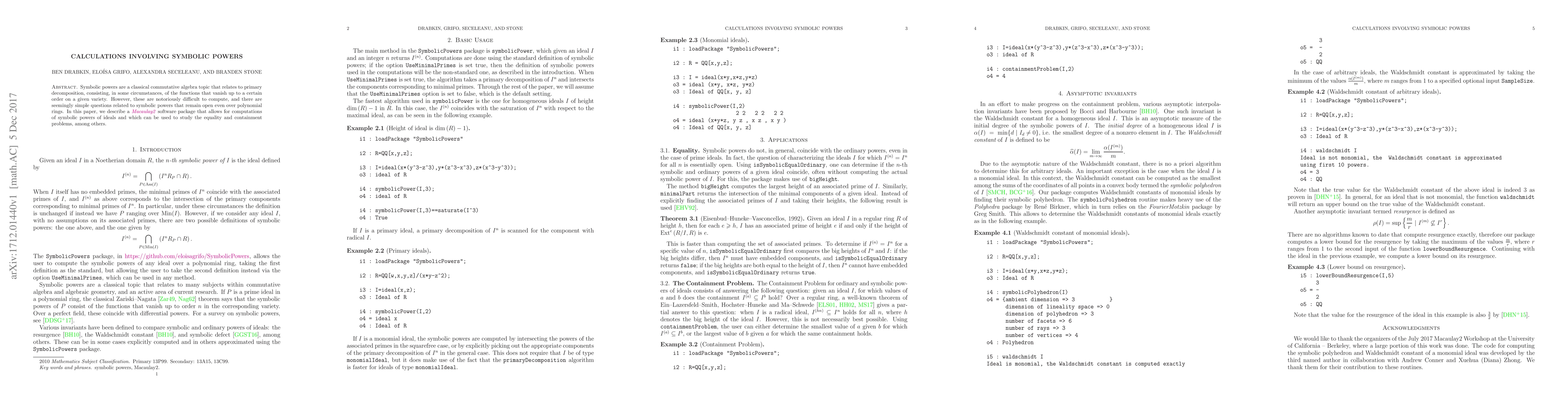 This paper introduces a Macaulay2 software package for computing symbolic powers of ideals, addressing longstanding difficulties in this area of commutative algebra, and provides tools for studying equality and containment problems.