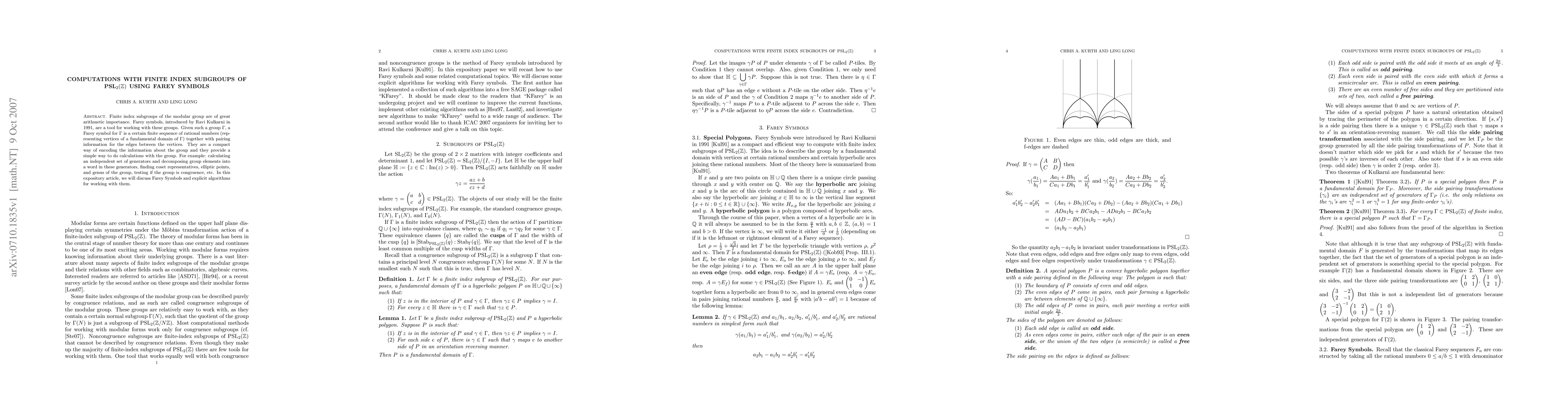 Finite index subgroups of the modular group are of great arithmetic importance. Farey symbols, introduced by Ravi Kulkarni in 1991, are a tool for working with these groups. Given such a group $\Gamma$, a Farey symbol for $\Gamma$ is a certain finite sequence of rational numbers (representing vertices of a fundamental domain of $\Gamma$) together with pairing information for the edges between the vertices. They are a compact way of encoding the information about the group and they provide a simple way to do calculations with the group. For example: calculating an independent set of generators and decomposing group elements into a word in these generators, finding coset representatives, elliptic points, and genus of the group, testing if the group is congruence, etc. In this expository article, we will discuss Farey Symbols and explicit algorithms for working with them.