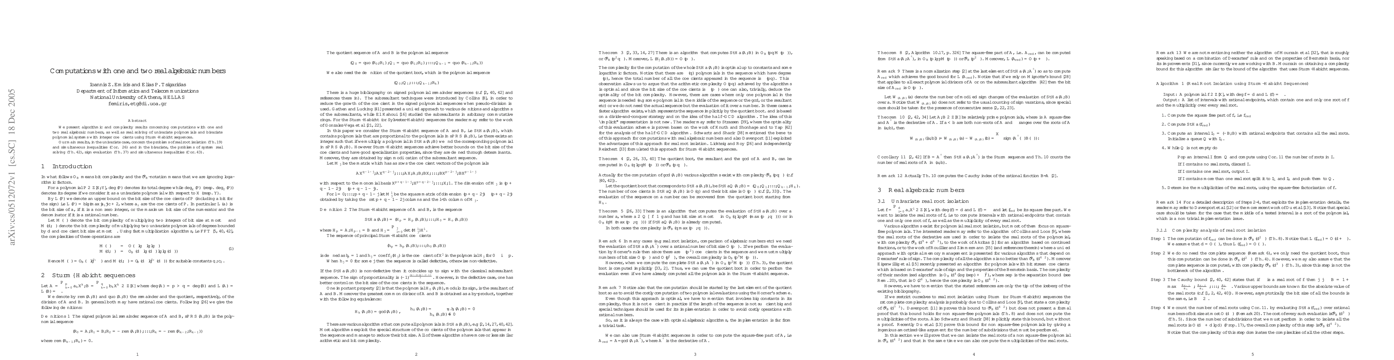 We present algorithmic and complexity results concerning computations with one and two real algebraic numbers, as well as real solving of univariate polynomials and bivariate polynomial systems with integer coefficients using Sturm-Habicht sequences. Our main results, in the univariate case, concern the problems of real root isolation (Th. 19) and simultaneous inequalities (Cor.26) and in the bivariate, the problems of system real solving (Th.42), sign evaluation (Th. 37) and simultaneous inequalities (Cor. 43).