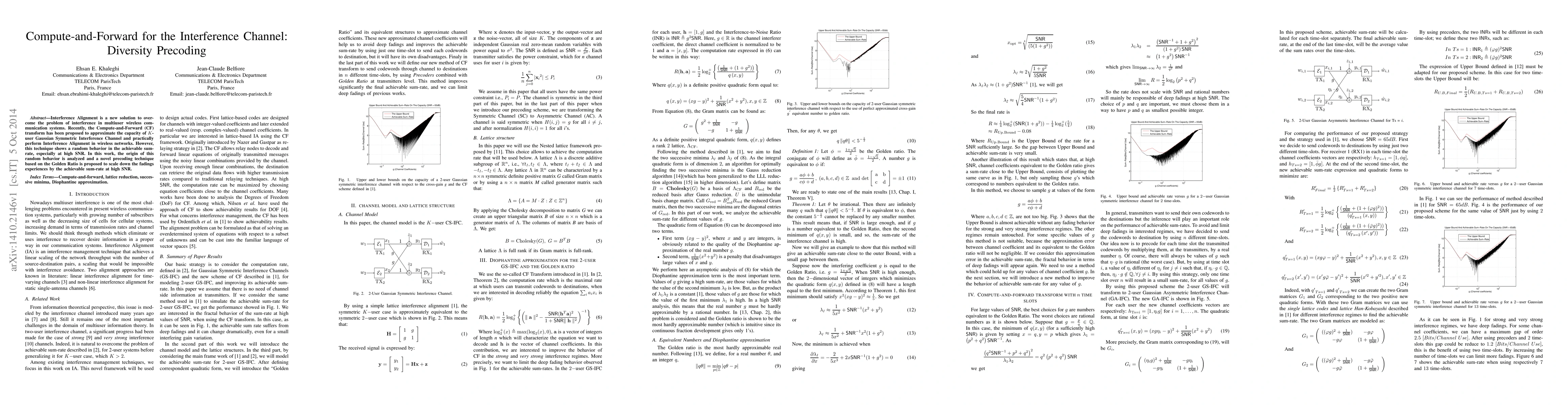 Interference Alignment is a new solution to over- come the problem of interference in multiuser wireless com- munication systems. Recently, the Compute-and-Forward (CF) transform has been proposed to approximate the capacity of K- user Gaussian Symmetric Interference Channel and practically perform Interference Alignment in wireless networks. However, this technique shows a random behavior in the achievable sum- rate, especially at high SNR. In this work, the origin of this random behavior is analyzed and a novel precoding technique based on the Golden Ratio is proposed to scale down the fadings experiences by the achievable sum-rate at high SNR.