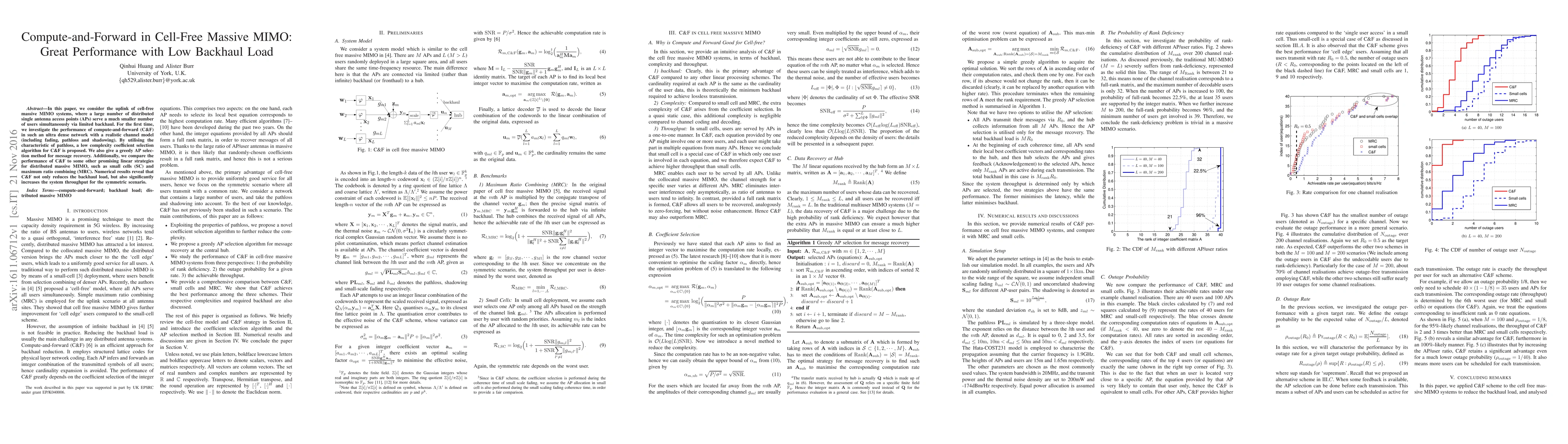 This paper investigates the performance of compute-and-forward (C&F) in cell-free massive MIMO systems, demonstrating its effectiveness in reducing backhaul load and enhancing system throughput with a low complexity coefficient selection algorithm. Comparative results show that C&F outperforms other linear strategies like small cells and MRC.