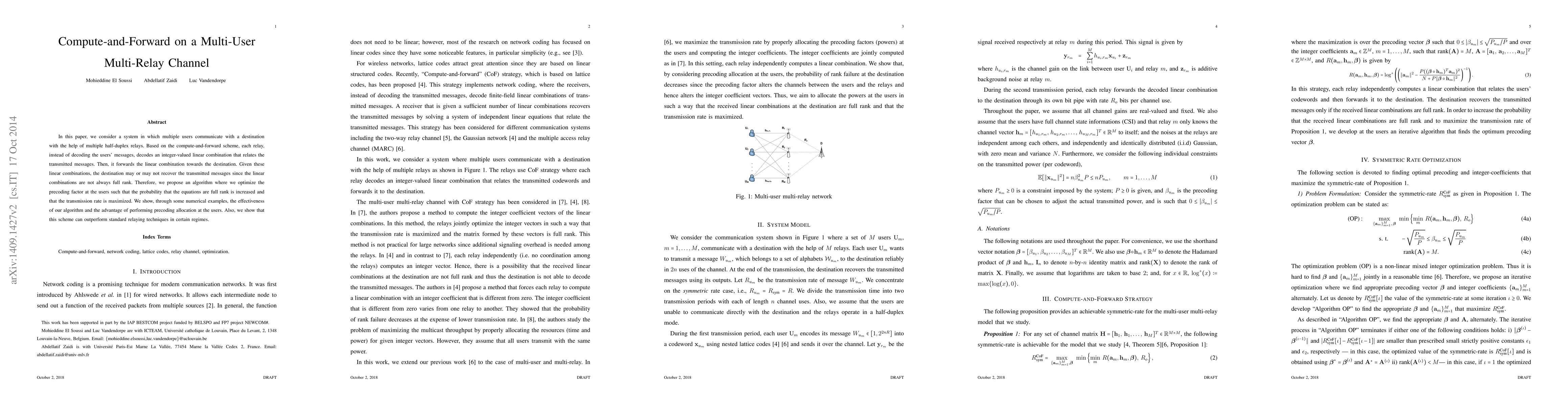 Researchers propose a new method for multiple users to communicate through relays using compute-and-forward scheme, optimizing precoding factor to maximize transmission rate and outperform standard techniques.