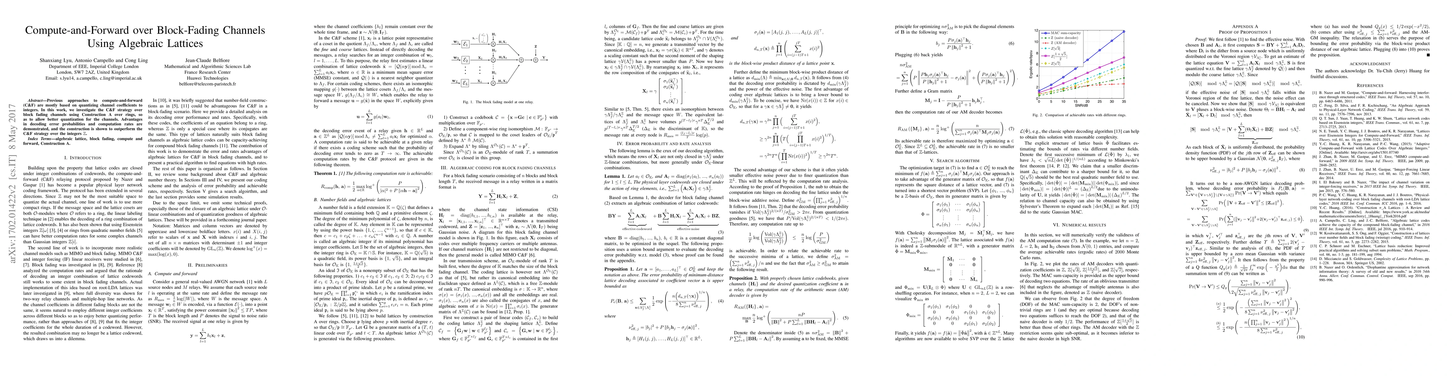 This paper explores the compute-and-forward (C&F) strategy over block-fading channels using algebraic lattices from Construction A over rings, demonstrating improved decoding error probabilities and computation rates compared to traditional integer-based quantization methods. The proposed approach outperforms conventional C&F strategies.