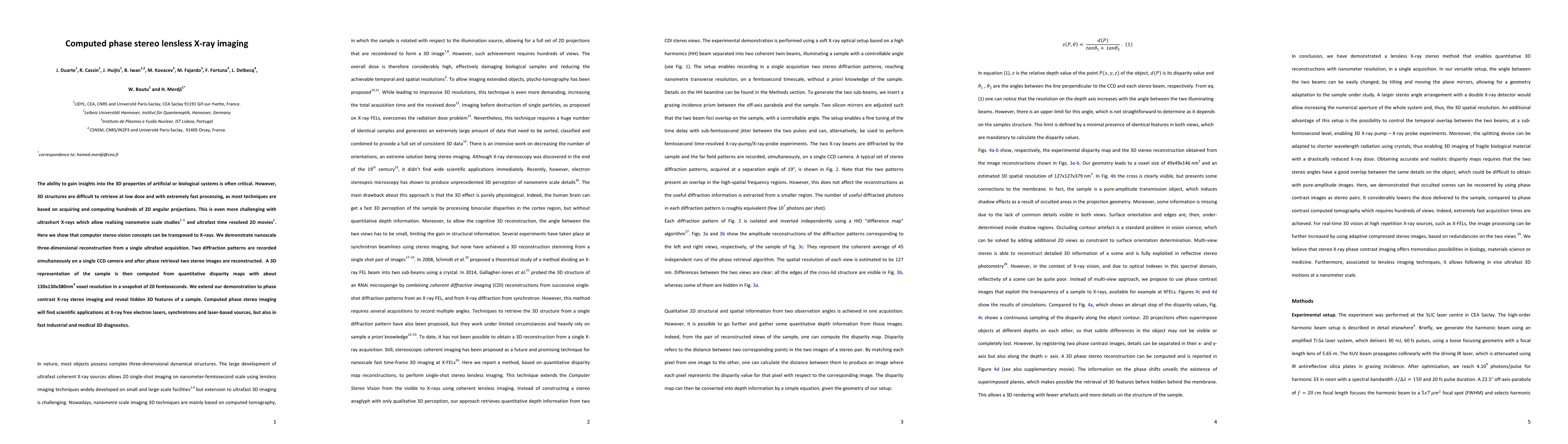 This research paper demonstrates a novel method for nanoscale 3D reconstruction using computed stereo lensless X-ray imaging, achieving high-resolution 3D representations from a single ultrafast acquisition with femtosecond temporal resolution. The technique employs phase retrieval from two simultaneous diffraction patterns to reveal hidden 3D features, with potential applications in scientific imaging and fast diagnostics.