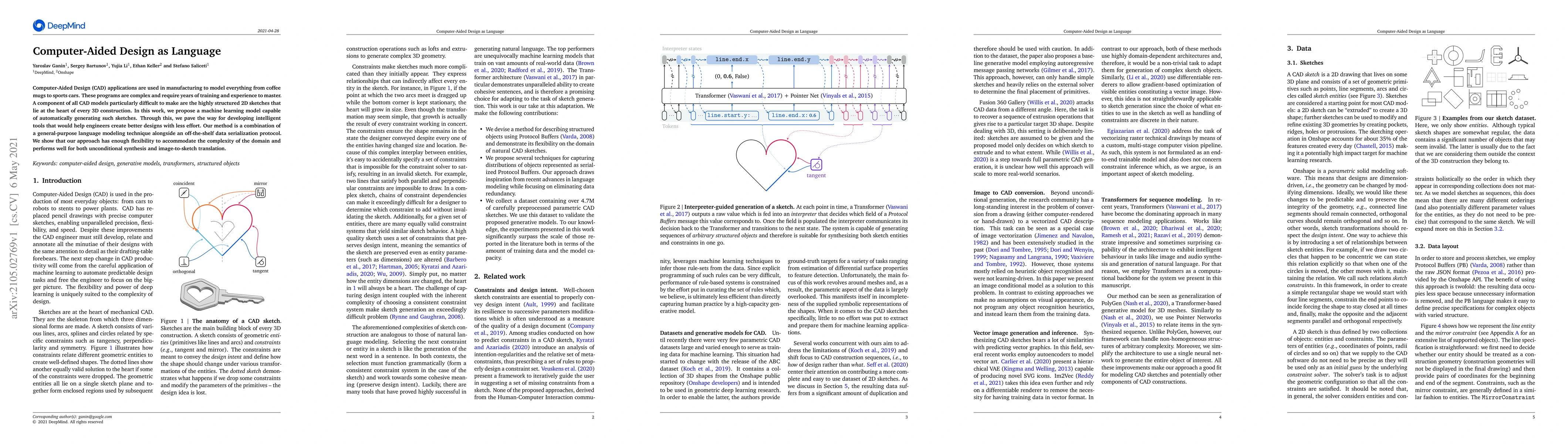 This research introduces a machine learning model to automatically generate complex 2D sketches essential for CAD models, combining language modeling with data serialization for flexibility and effectiveness in both unconditional synthesis and image-to-sketch translation. This innovation aims to aid engineers in creating better designs with reduced effort.