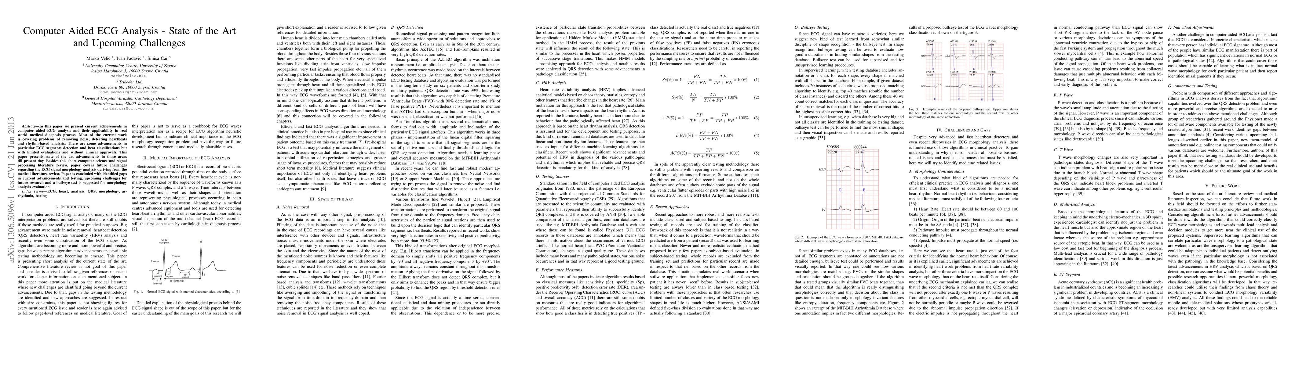 In this paper we present current achievements in computer aided ECG analysis and their applicability in real world medical diagnosis process. Most of the current work is covering problems of removing noise, detecting heartbeats and rhythm-based analysis. There are some advancements in particular ECG segments detection and beat classifications but with limited evaluations and without clinical approvals. This paper presents state of the art advancements in those areas till present day. Besides this short computer science and signal processing literature review, paper covers future challenges regarding the ECG signal morphology analysis deriving from the medical literature review. Paper is concluded with identified gaps in current advancements and testing, upcoming challenges for future research and a bullseye test is suggested for morphology analysis evaluation.