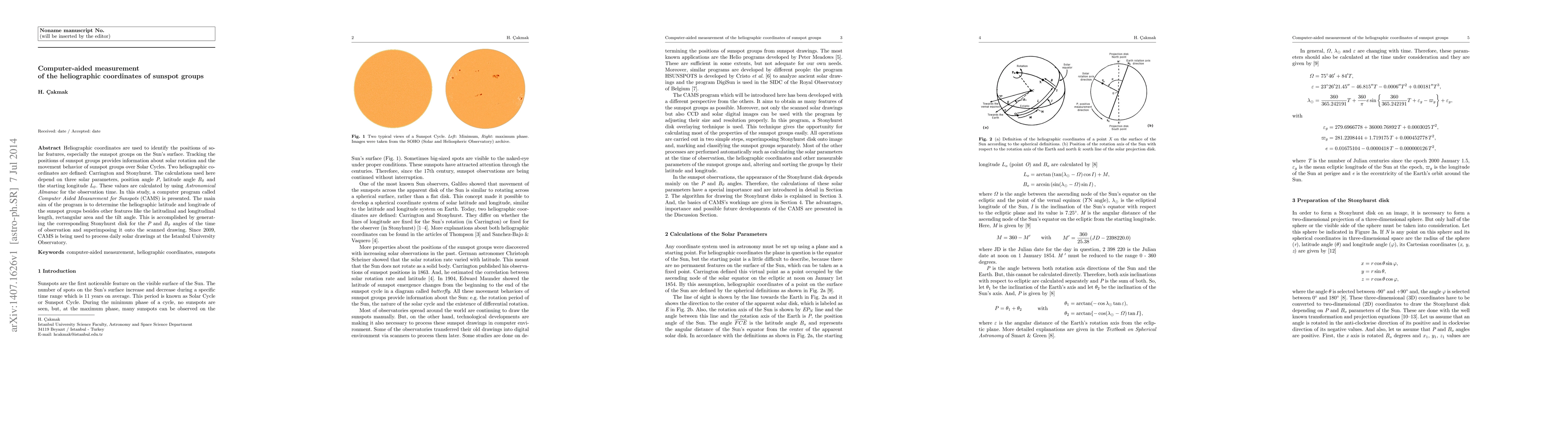 This paper introduces a computer program, CAMS, designed to measure heliographic coordinates of sunspot groups, including latitude, longitude, and other features, by generating and superimposing a Stonyhurst disk onto scanned solar drawings. Since 2009, CAMS has been utilized at Istanbul University Observatory for daily solar observations.