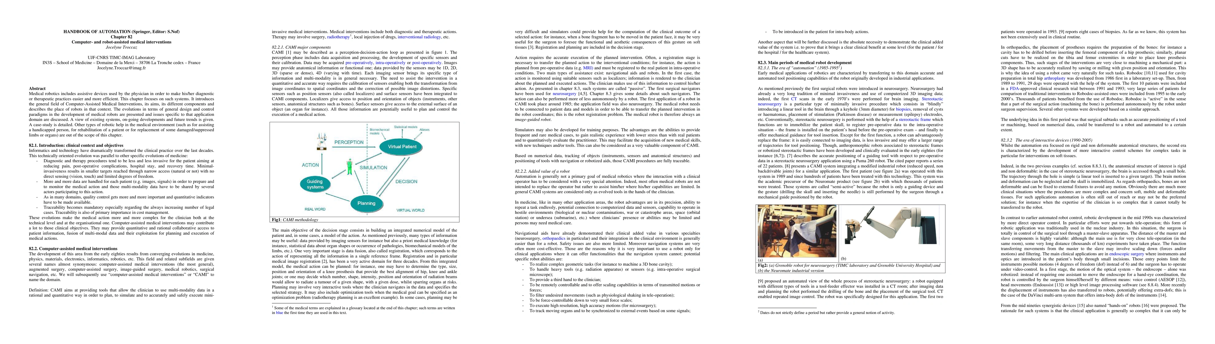 This paper explores computer- and robot-assisted medical interventions, focusing on the role of assistive devices in enhancing diagnostic and therapeutic practices. It discusses the evolution of design and control paradigms in medical robotics and provides insights into existing systems, ongoing developments, and future trends.