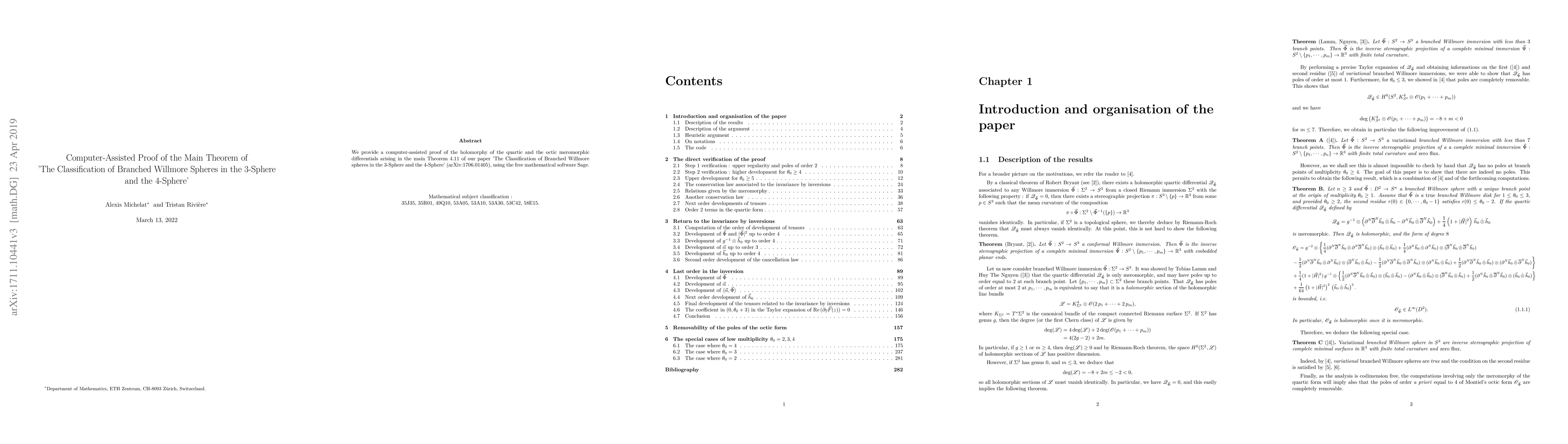 We provide a computer-assisted proof of the holomorphy of the quartic and the octic meromorphic differentials arising in the main Theorem 4.11 of our paper 'The Classification of Branched Willmore spheres in the $3$-Sphere and the $4$-Sphere' (arXiv:1706.01405), using the free mathematical software Sage.