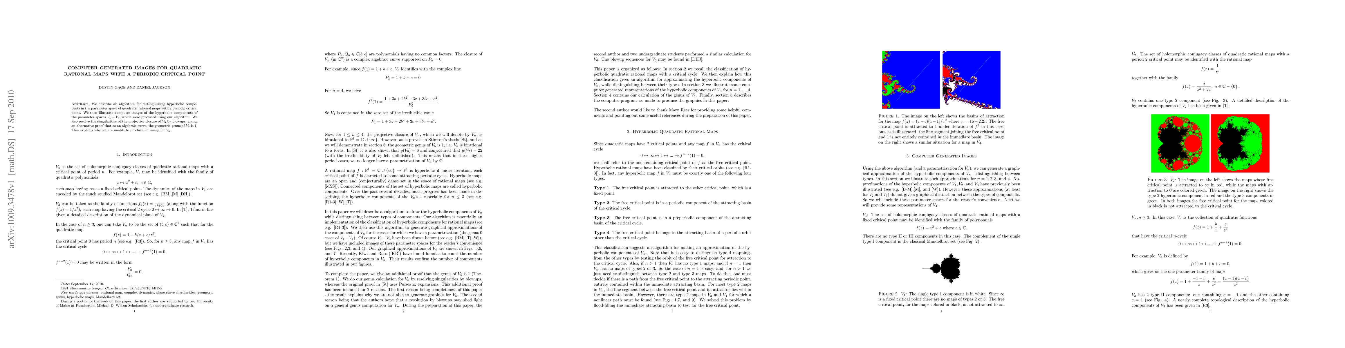 This paper presents an algorithm to identify hyperbolic components in quadratic rational maps with periodic critical points and showcases computer-generated images for these components (V1-V4). It also resolves the singularities of V5 through blowups, confirming its algebraic genus as 1, explaining the inability to generate an image for V5.