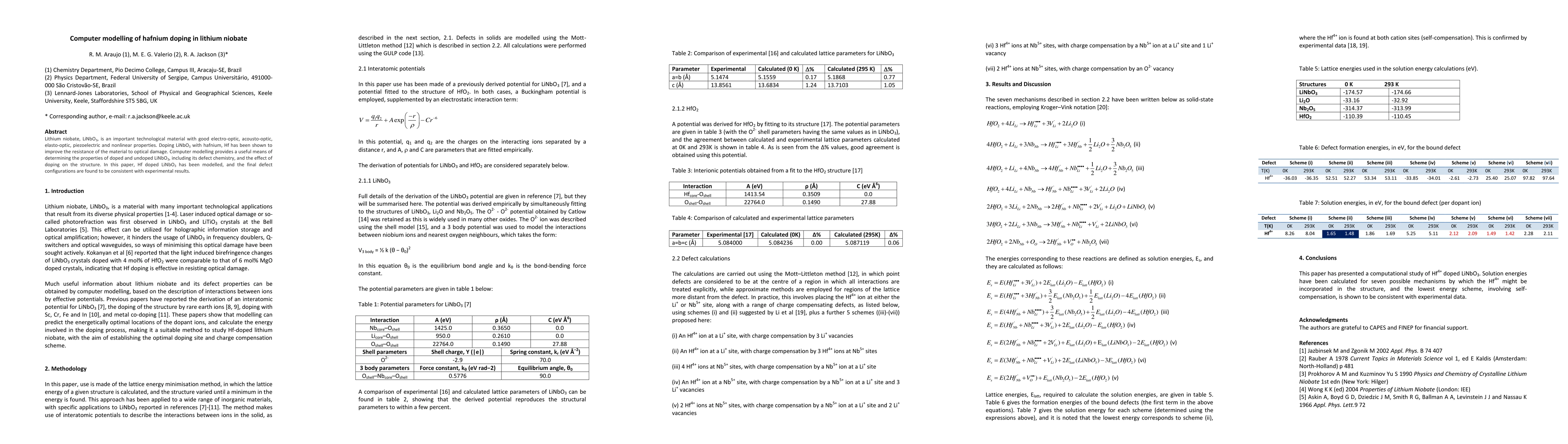 Lithium niobate, LiNbO3, is an important technological material with good electro-optic, acousto-optic, elasto-optic, piezoelectric and nonlinear properties. Doping LiNbO3 with hafnium, Hf has been shown to improve the resistance of the material to optical damage. Computer modelling provides a useful means of determining the properties of doped and undoped LiNbO3, including its defect chemistry, and the effect of doping on the structure. In this paper, Hf doped LiNbO3 has been modelled, and the final defect configurations are found to be consistent with experimental results.