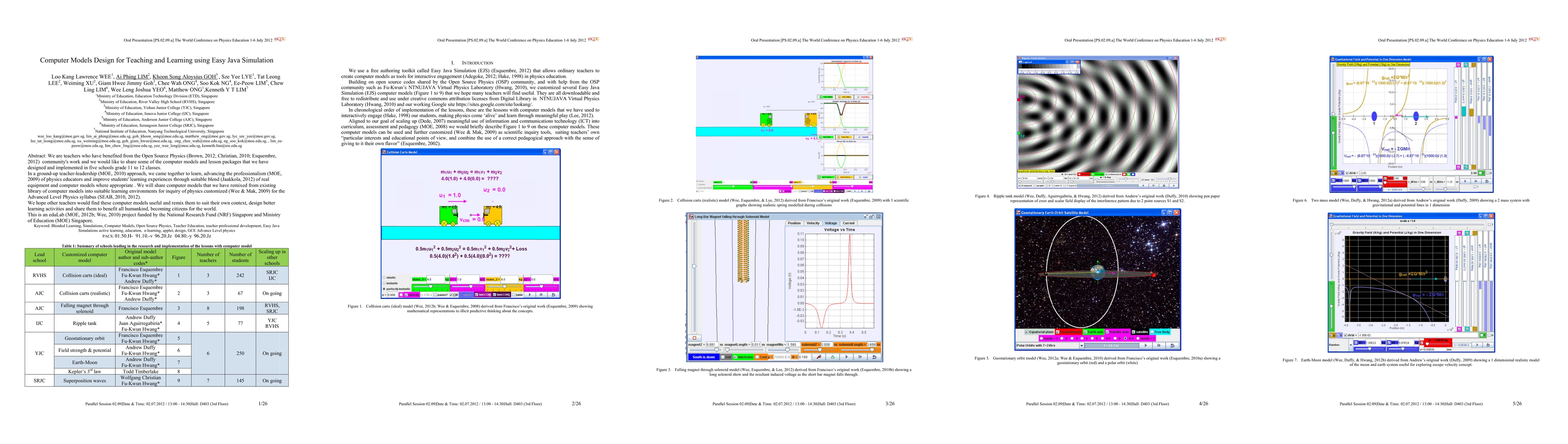 We are teachers who have benefited from the Open Source Physics (Brown, 2012; Christian, 2010; Esquembre, 2012) community's work and we would like to share some of the computer models and lesson packages that we have designed and implemented in five schools grade 11 to 12 classes. In a ground-up teacher-leadership (MOE, 2010) approach, we came together to learn, advancing the professionalism (MOE, 2009) of physics educators and improve students' learning experiences through suitable blend (Jaakkola, 2012) of real equipment and computer models where appropriate . We will share computer models that we have remixed from existing library of computer models into suitable learning environments for inquiry of physics customized (Wee & Mak, 2009) for the Advanced Level Physics syllabus (SEAB, 2010, 2012). We hope other teachers would find these computer models useful and remix them to suit their own context, design better learning activities and share them to benefit all humankind, becoming citizens for the world. This is an eduLab (MOE, 2012b; Wee, 2010) project funded by the National Research Fund (NRF) Singapore and Ministry of Education (MOE) Singapore.