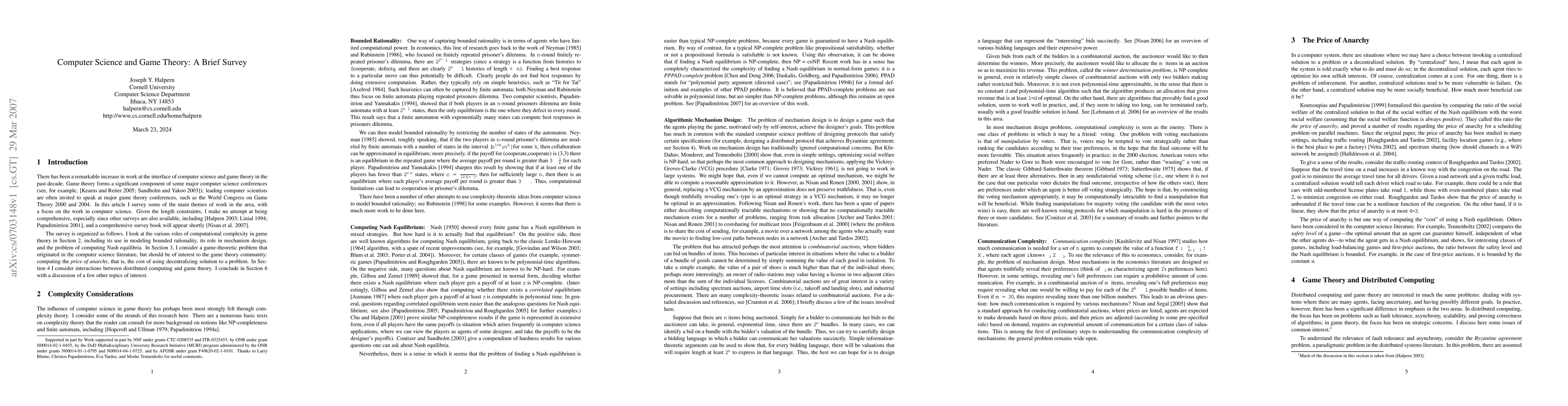 This paper surveys recent work at the intersection of computer science and game theory, highlighting key findings in areas such as artificial intelligence and strategy planning. It provides a concise overview of major themes without aiming for comprehensive coverage.