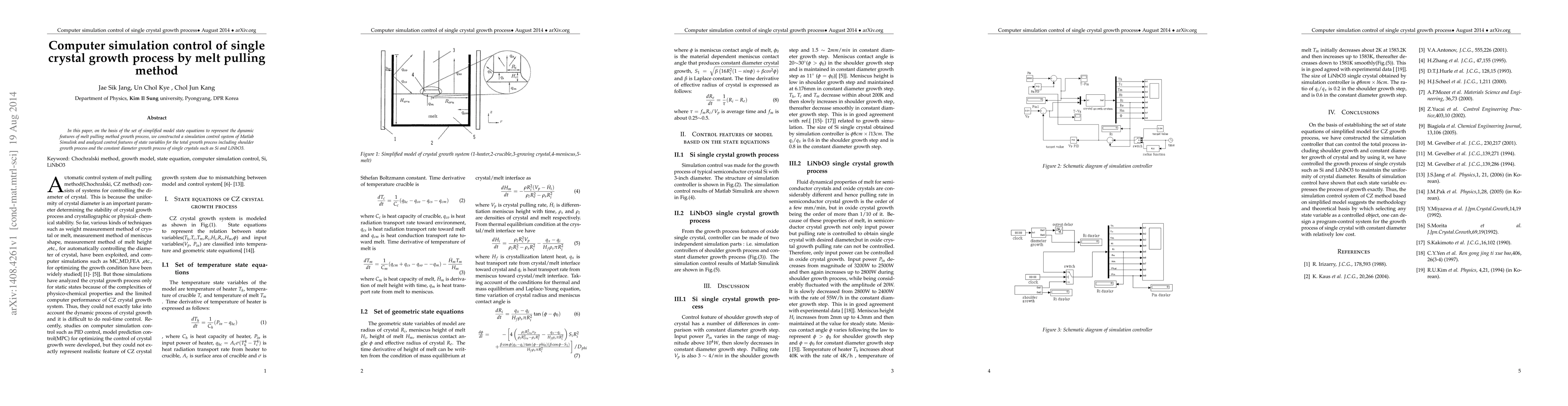 This paper develops a Matlab Simulink simulation control system for the melt pulling method used in single crystal growth, analyzing control features of state variables throughout the growth process, including shoulder and constant diameter stages for materials like Si and LiNbO3. The study focuses on dynamic modeling and system control of the crystal growth process.