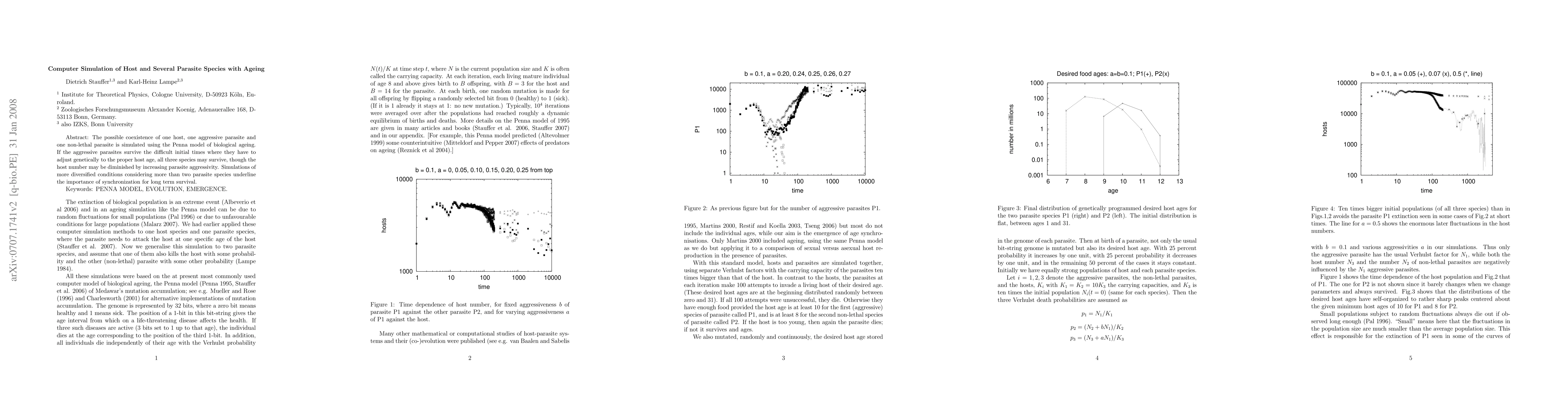 This paper simulates the coexistence of a host species and two parasite species—one aggressive and one non-lethal—using the Penna model of biological ageing. The simulation suggests that while the aggressive parasite may initially struggle, successful adaptation can lead to the long-term survival of all three species, albeit with a reduced host population due to increased parasite aggression.