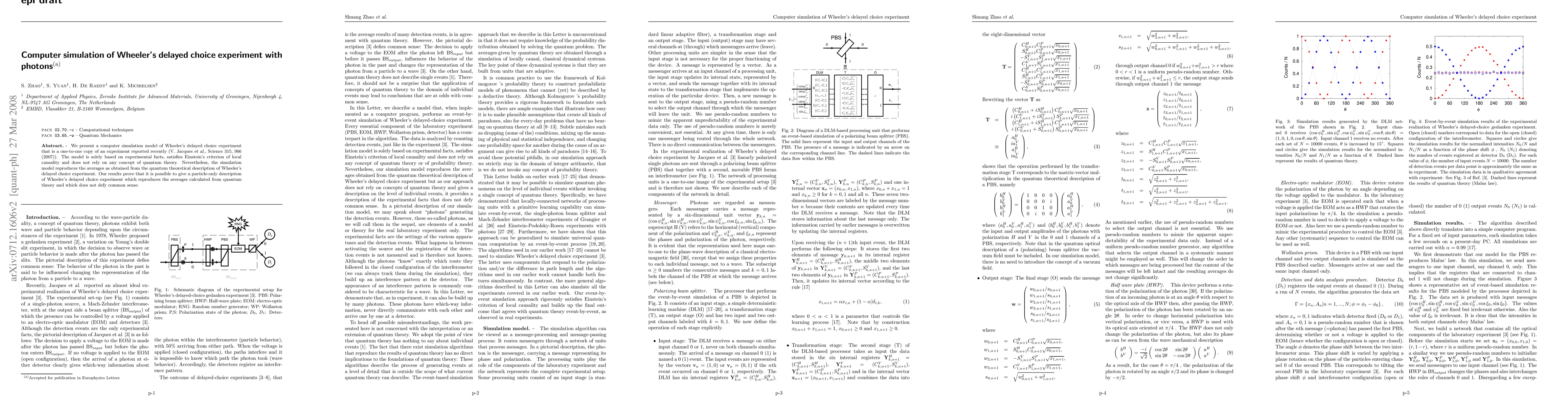 This paper presents a computer simulation of Wheeler's delayed choice experiment that replicates the results predicted by quantum theory without using quantum concepts, demonstrating a particle-only description that adheres to local causality and common sense.