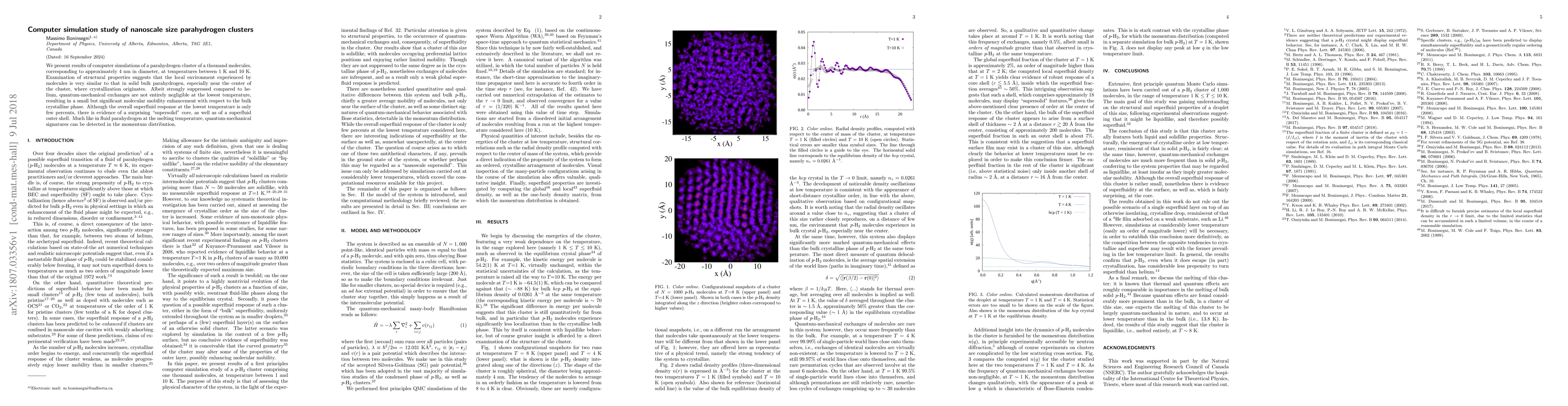 This study uses computer simulations to analyze a nanoscale parahydrogen cluster, revealing structural similarities to bulk solid parahydrogen and a surprising "supersolid" core with superfluid outer shell behavior, despite minimal overall superfluid response. Quantum-mechanical effects, though suppressed, contribute to slight molecular mobility enhancements.