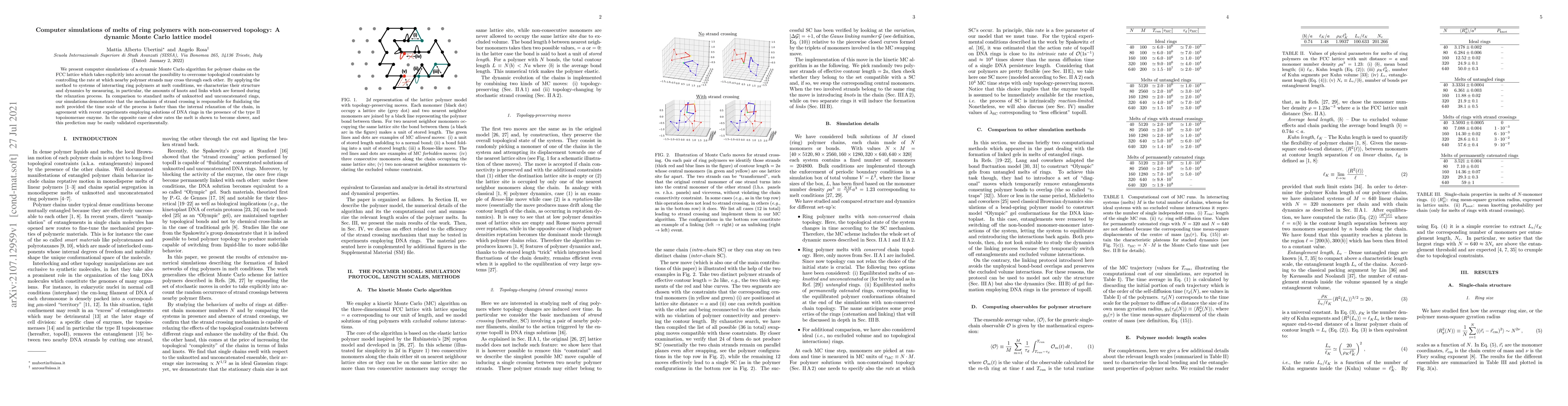 This paper presents a dynamic Monte Carlo lattice model to simulate melts of ring polymers, focusing on the ability of polymer strands to cross each other, which influences the melt's fluidity. The study finds that faster crossing rates fluidize the melt, while slower rates slow it down, aligning with experimental observations of DNA rings.