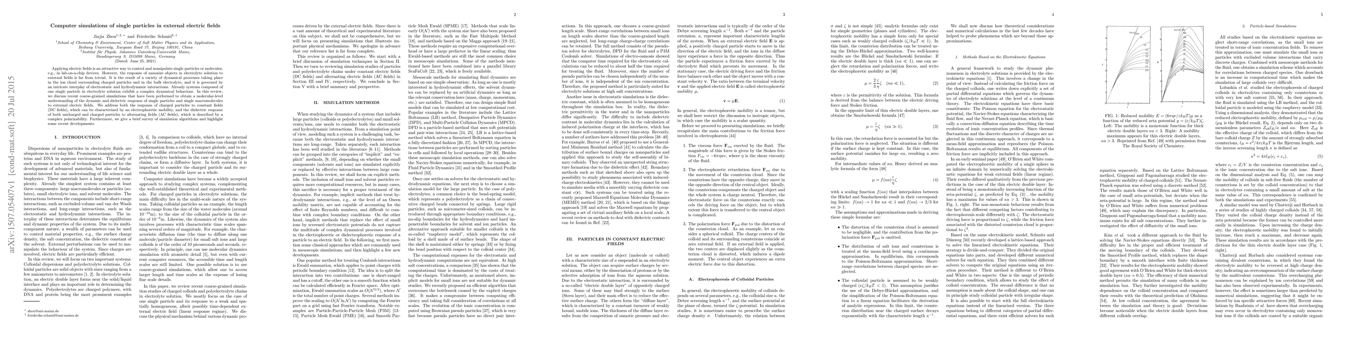 Applying electric fields is an attractive way to control and manipulate single particles or molecules, e.g., in lab-on-a-chip devices. However, the response of nanosize objects in electrolyte solution to external fields is far from trivial. It is the result of a variety of dynamical processes taking place in the ion cloud surrounding charged particles and in the bulk electrolyte, and it is governed by an intricate interplay of electrostatic and hydrodynamic interactions. Already systems composed of one single particle in electrolyte solution exhibit a complex dynamical behaviour. In this review, we discuss recent coarse-grained simulations that have been performed to obtain a molecular-level understanding of the dynamic and dielectric response of single particles and single macromolecules to external electric fields. We address both the response of charged particles to constant fields (DC fields), which can be characterized by an electrophoretic mobility, and the dielectric response of both uncharged and charged particles to alternating fields (AC fields), which is described by a complex polarizability. Furthermore, we give a brief survey of simulation algorithms and highlight some recent developments.