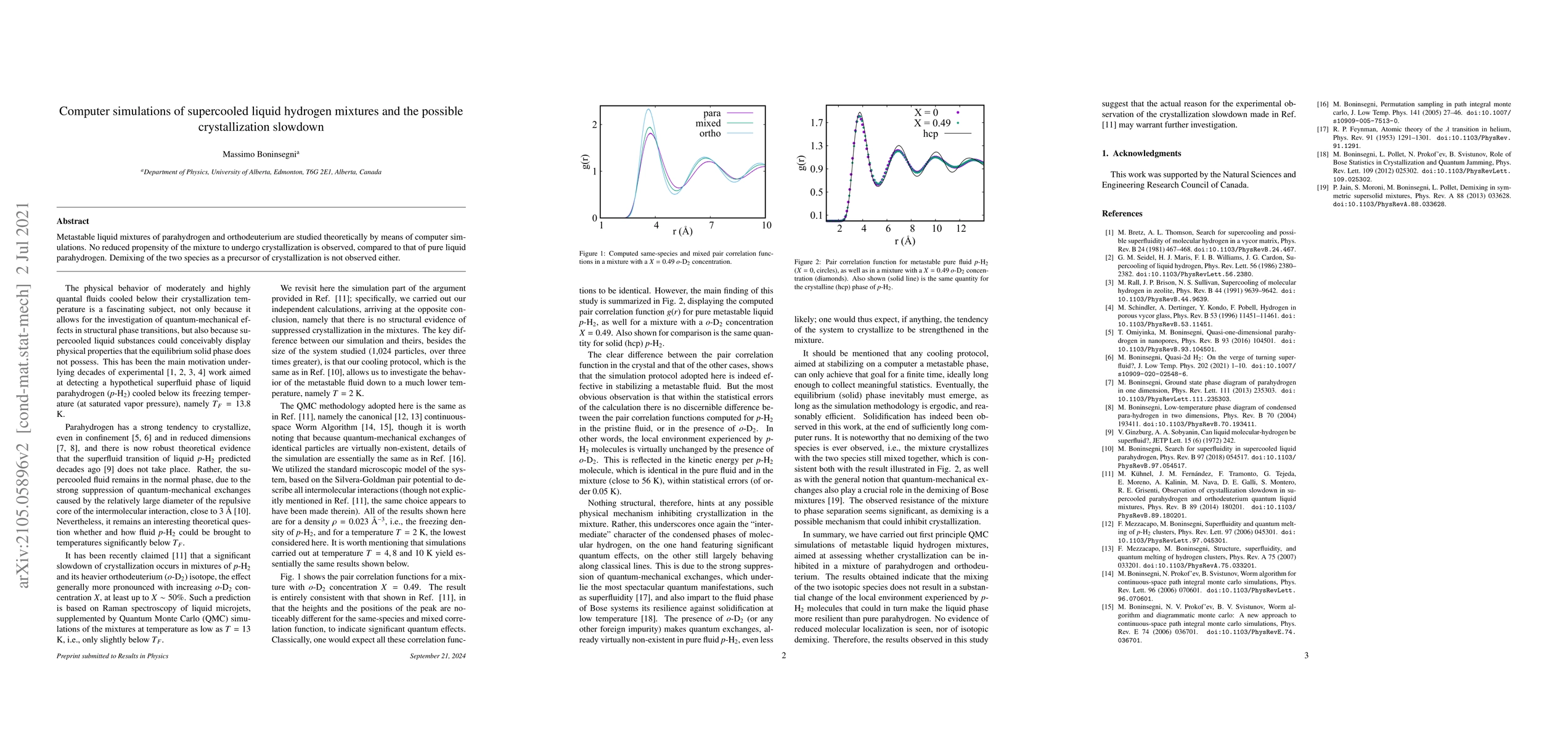 Summary: Computer simulations reveal that supercooled liquid mixtures of parahydrogen and orthodeuterium do not exhibit a reduced tendency to crystallize compared to pure liquid parahydrogen, and no demixing occurs as a precursor to crystallization.