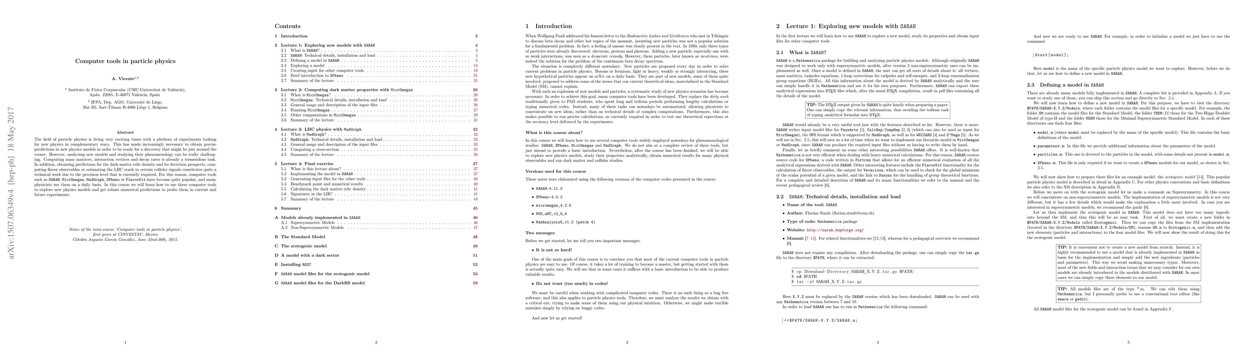 This paper discusses the necessity of computer tools like SARAH, MicrOmegas, MadGraph, SPheno, and FlavorKit in particle physics to handle complex calculations and precise predictions required for new physics models. It outlines the course aimed at teaching physicists how to utilize these tools to explore new models and generate reliable numerical predictions for current and future experiments.