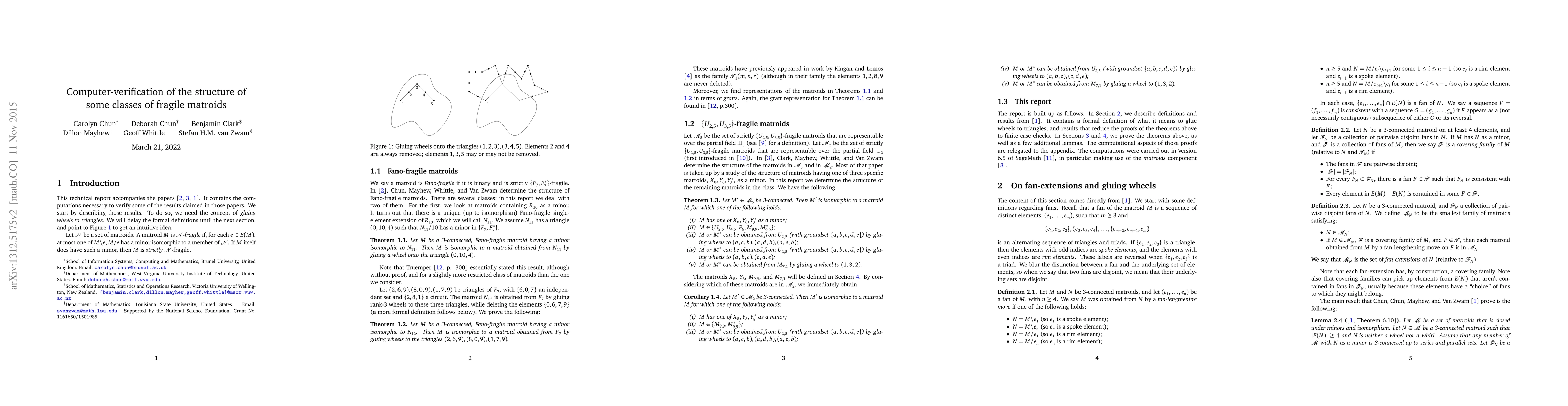 This technical report accompanies the following three papers. It contains the computations necessary to verify some of the results claimed in those papers. [1] Carolyn Chun, Deborah Chun, Dillon Mayhew, and Stefan H. M. van Zwam. Fan-extensions in fragile matroids. In preparation. [2] Carolyn Chun, Dillon Mayhew, Geoff Whittle, and Stefan H. M. van Zwam. The structure of binary Fano-fragile matroids. In preparation. [3] Ben Clark, Dillon Mayhew, Geoff Whittle, and Stefan H. M. van Zwam. The structure of {U2,5, U3,5}-fragile matroids. In preparation.