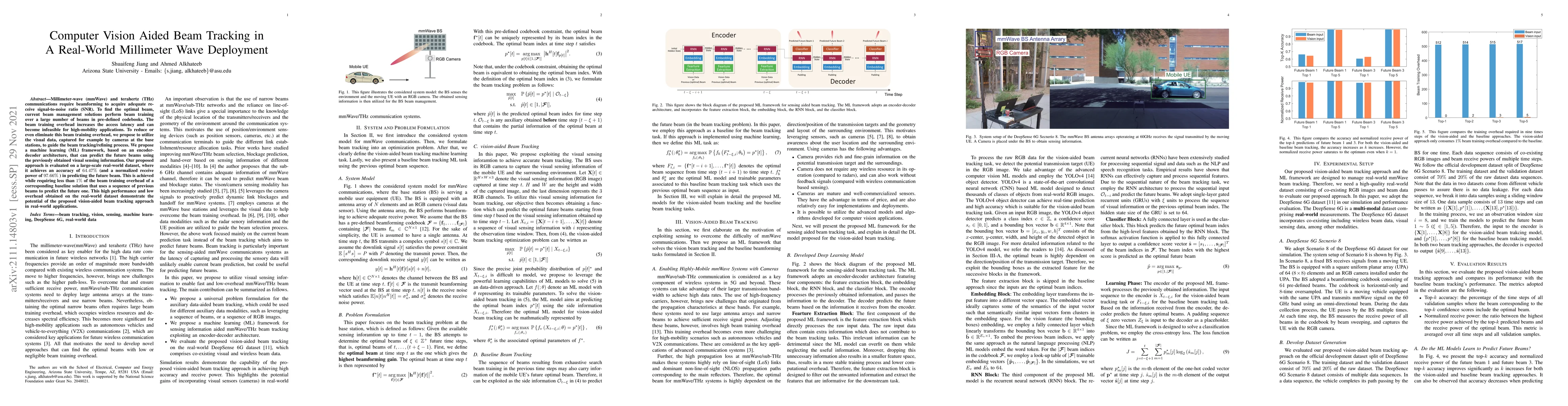 This paper proposes a machine learning framework using computer vision to reduce beam training overhead in millimeter-wave communications by predicting future beams based on visual data. The approach achieves 64.47% accuracy and 97.66% normalized receive power, significantly lowering the beam training overhead compared to traditional methods.