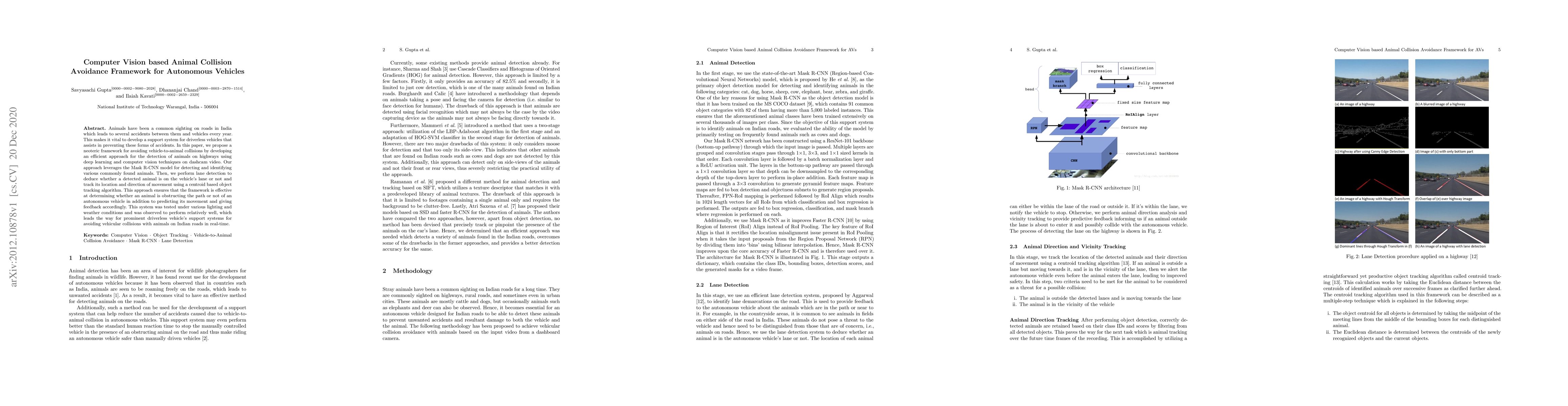 A new framework uses computer vision and deep learning to detect and track animals on roads, preventing collisions with self-driving vehicles in India. The system was tested under various conditions and showed promising results, paving the way for real-time animal collision avoidance systems.