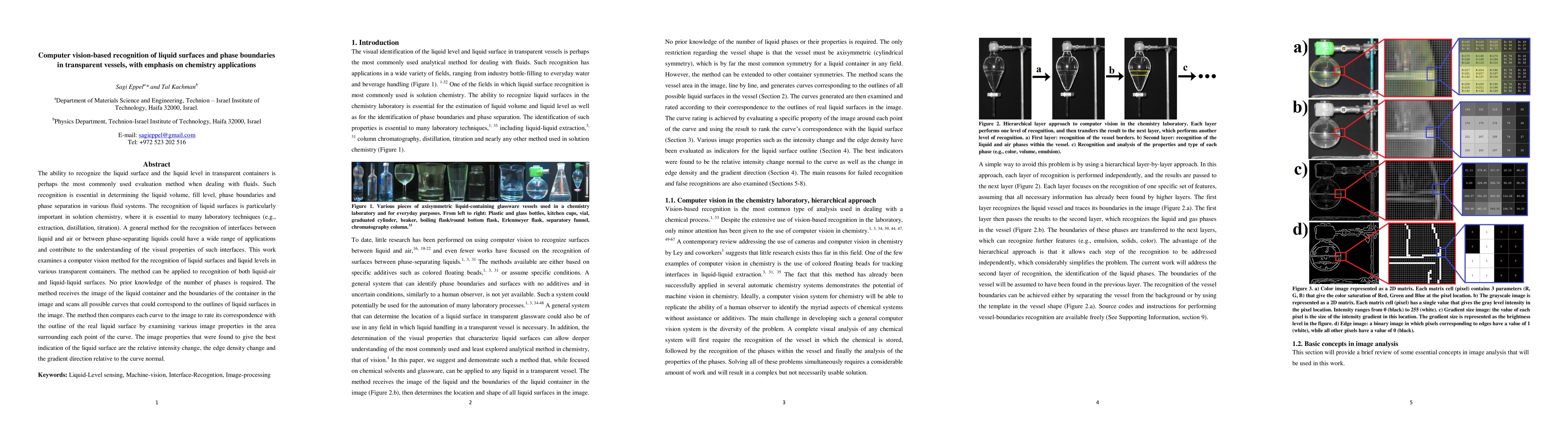 A computer vision method is proposed to recognize liquid surfaces and phase boundaries in transparent vessels, with applications in solution chemistry and laboratory techniques.