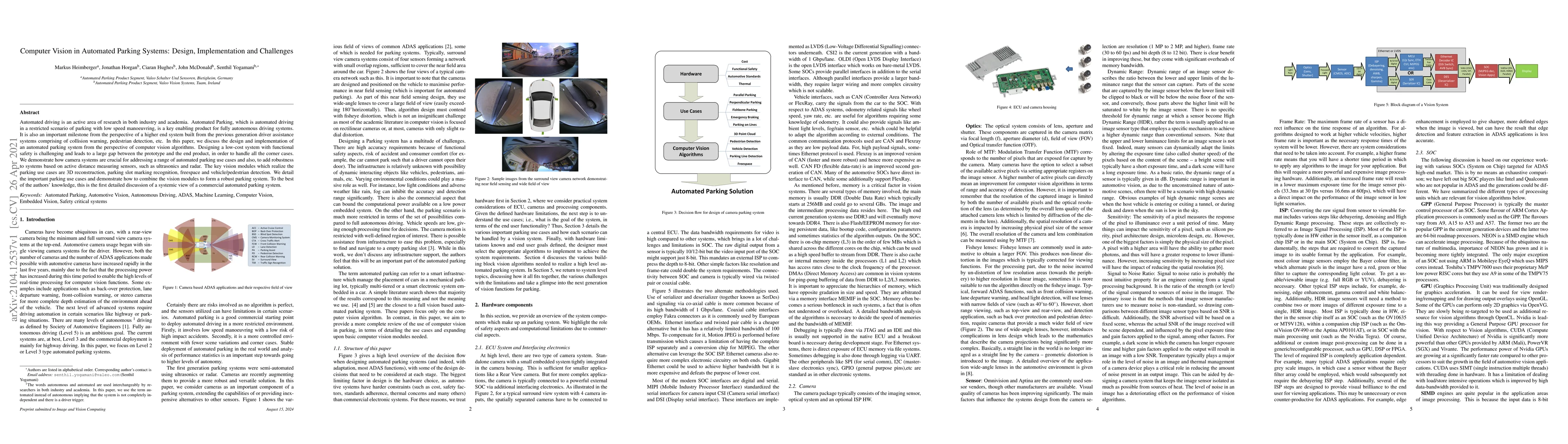 This paper explores the design and implementation of an automated parking system using computer vision, emphasizing low-cost, functional safety, and the integration of camera systems to enhance robustness. It details key vision modules like 3D reconstruction and pedestrian detection, and discusses the challenges in bridging the gap between prototype and commercial deployment.