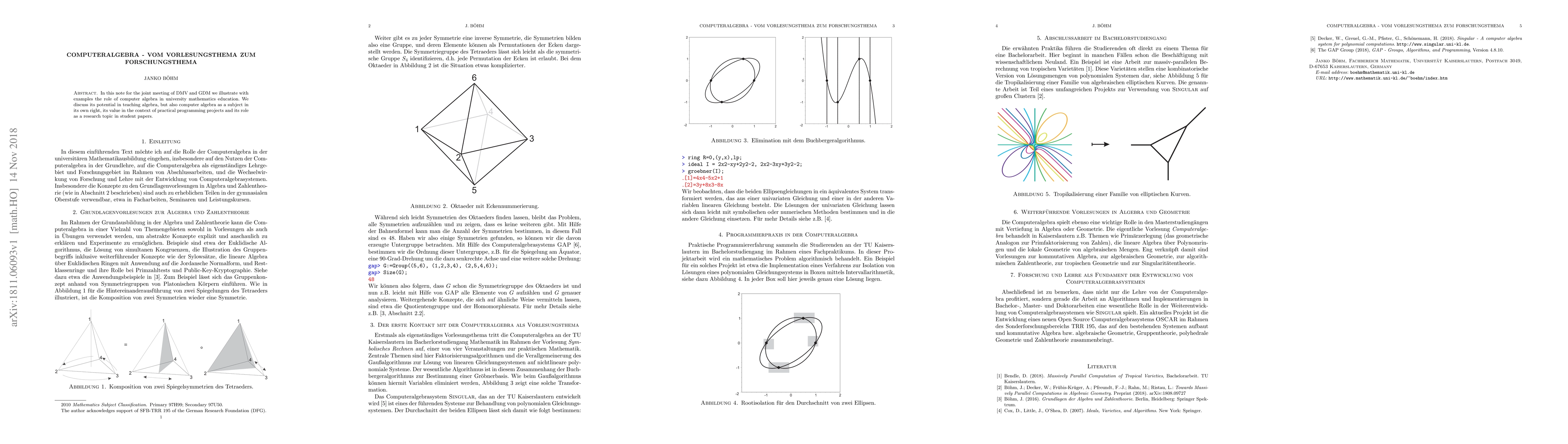 In this note for the joint meeting of DMV and GDM we illustrate with examples the role of computer algebra in university mathematics education. We discuss its potential in teaching algebra, but also computer algebra as a subject in its own right, its value in the context of practical programming projects and its role as a research topic in student papers.