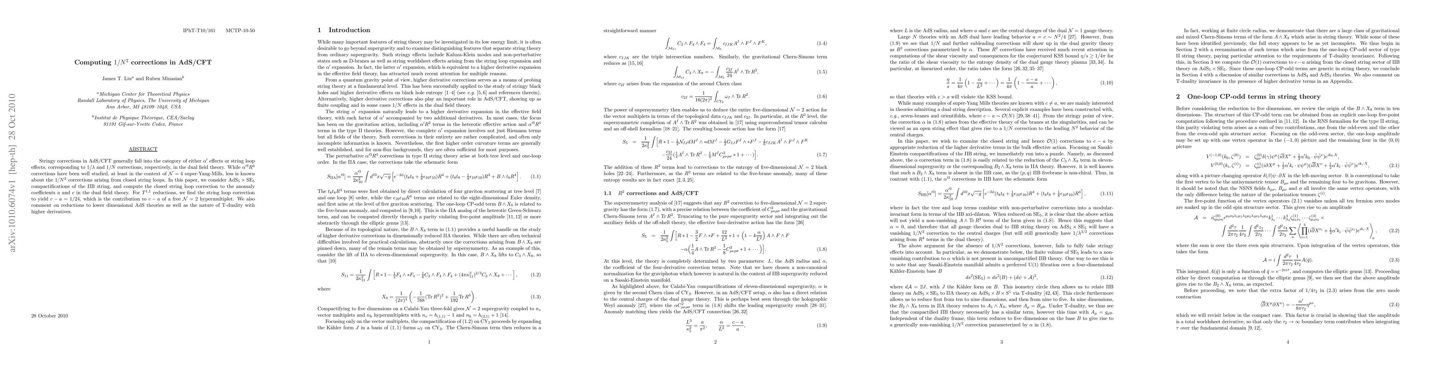 Stringy corrections in AdS/CFT generally fall into the category of either \alpha' effects or string loop effects, corresponding to 1/\lambda and 1/N corrections, respectively, in the dual field theory. While \alpha'^3R^4 corrections have been well studied, at least in the context of N=4 super-Yang-Mills, less is known about the 1/N^2 corrections arising from closed string loops. In this paper, we consider AdS_5 x SE_5 compactifications of the IIB string, and compute the closed string loop correction to the anomaly coefficients a and c in the dual field theory. For T^{1,1} reductions, we find the string loop correction to yield c-a=1/24, which is the contribution to c-a of a free N=2 hypermultiplet. We also comment on reductions to lower dimensional AdS theories as well as the nature of T-duality with higher derivatives.