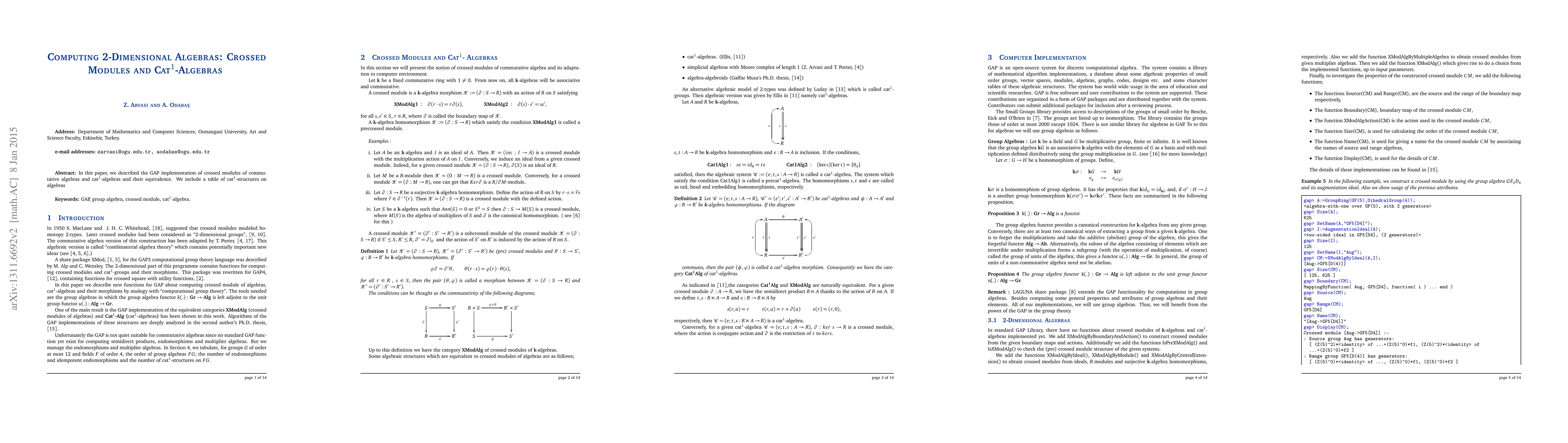 In this paper, we described the GAP implementation of crossed modules of commutative algebras and cat$^{1}$-algebras and their equivalence.