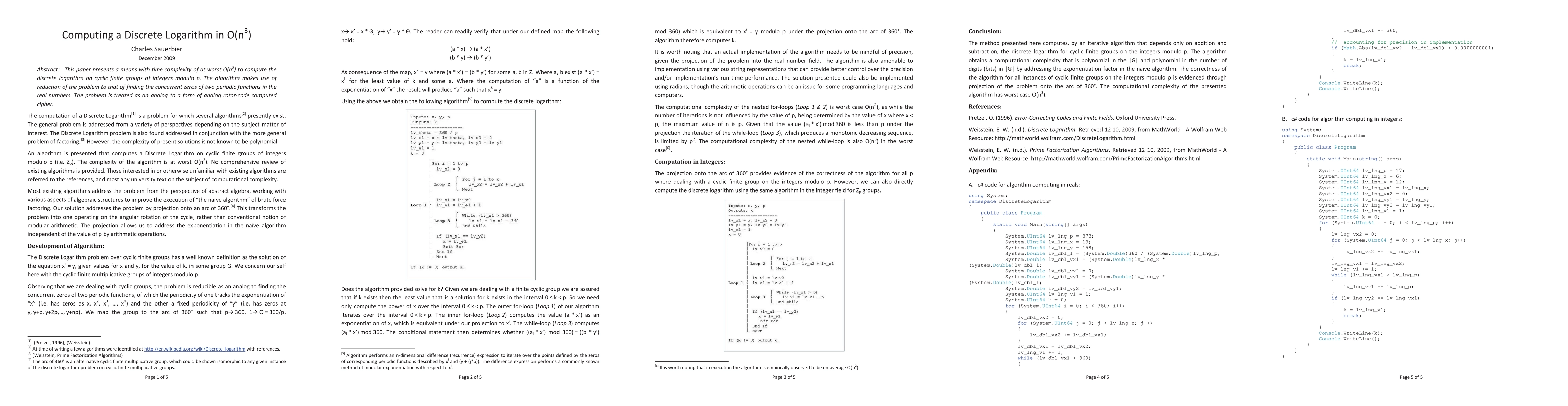 This paper presents a means with time complexity of at worst O(n^3) to compute the discrete logarithm on cyclic finite groups of integers modulo p. The algorithm makes use of reduction of the problem to that of finding the concurrent zeros of two periodic functions in the real numbers. The problem is treated as an analog to a form of analog rotor-code computed cipher.