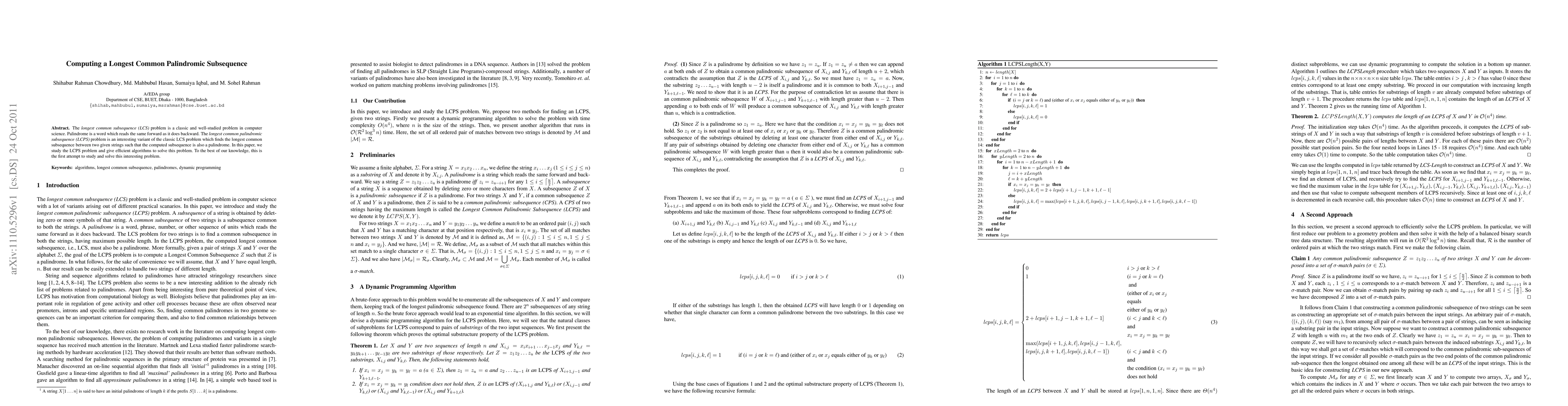 This paper introduces the novel problem of finding the longest common palindromic subsequence (LCPS) between two strings, presenting the first algorithms to solve this problem efficiently. The study marks the first attempt to address this variant of the classic longest common subsequence (LCS) problem.