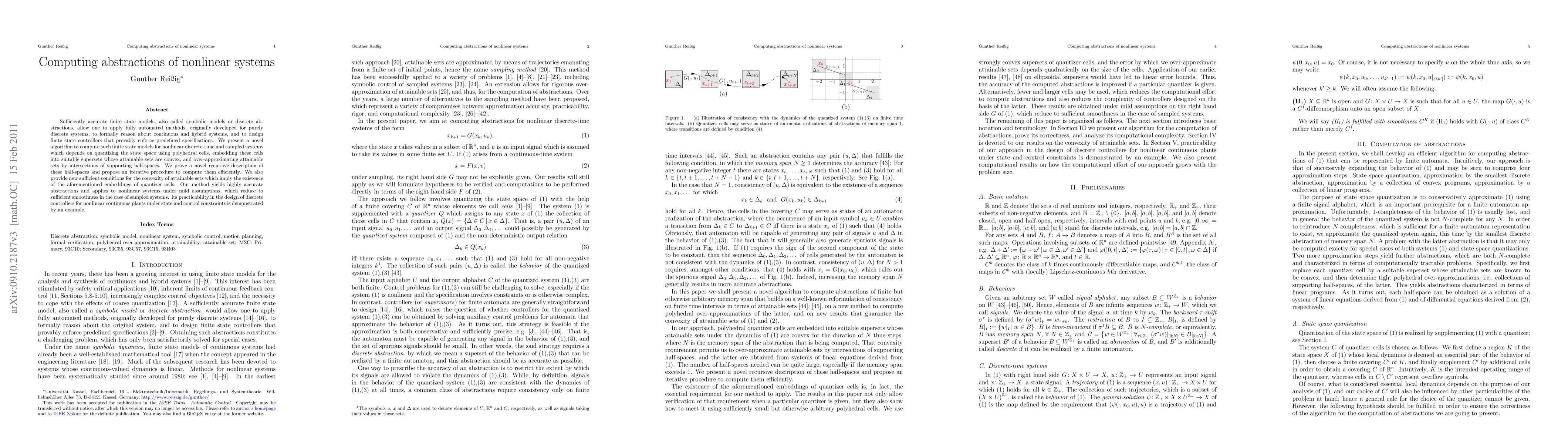 Sufficiently accurate finite state models, also called symbolic models or discrete abstractions, allow one to apply fully automated methods, originally developed for purely discrete systems, to formally reason about continuous and hybrid systems, and to design finite state controllers that provably enforce predefined specifications. We present a novel algorithm to compute such finite state models for nonlinear discrete-time and sampled systems which depends on quantizing the state space using polyhedral cells, embedding these cells into suitable supersets whose attainable sets are convex, and over-approximating attainable sets by intersections of supporting half-spaces. We prove a novel recursive description of these half-spaces and propose an iterative procedure to compute them efficiently. We also provide new sufficient conditions for the convexity of attainable sets which imply the existence of the aforementioned embeddings of quantizer cells. Our method yields highly accurate abstractions and applies to nonlinear systems under mild assumptions, which reduce to sufficient smoothness in the case of sampled systems. Its practicability in the design of discrete controllers for nonlinear continuous plants under state and control constraints is demonstrated by an example.