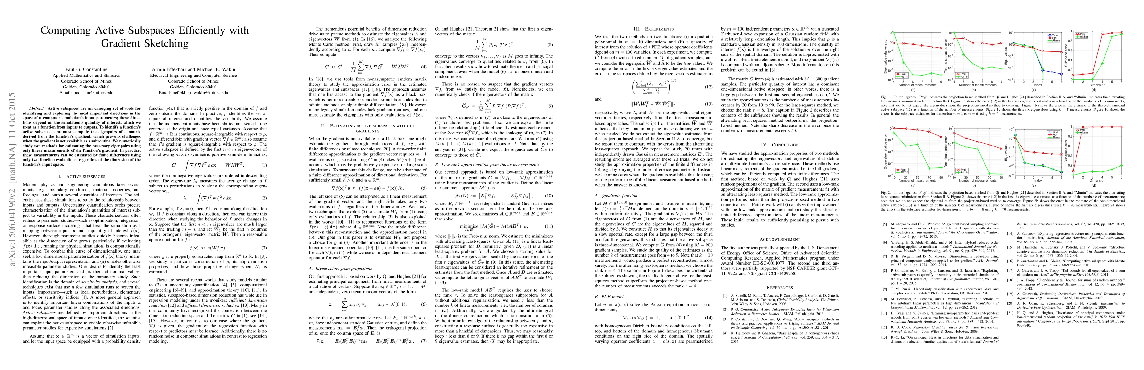This paper proposes a method to efficiently estimate active subspaces in high-dimensional spaces using gradient sketching, enabling the identification of crucial input directions for computer simulations.