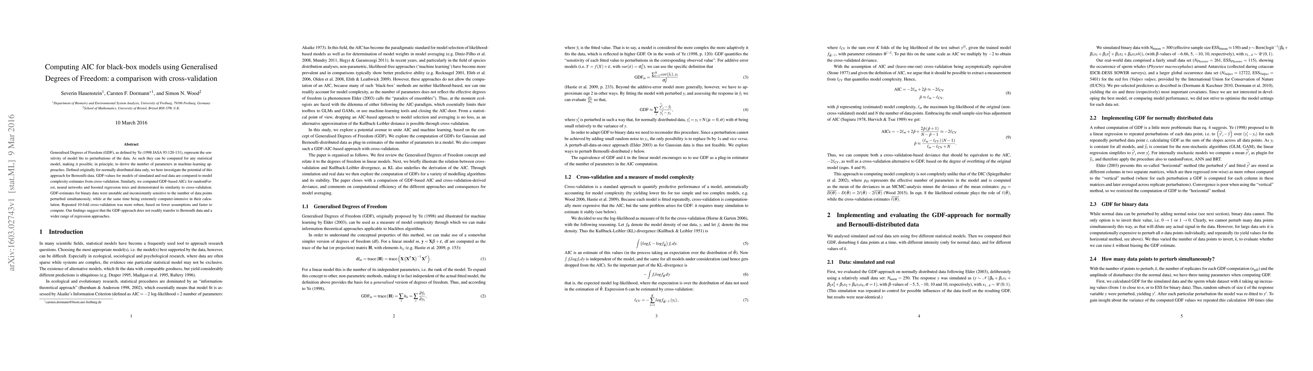 Researchers compared Generalised Degrees of Freedom (GDF) to cross-validation for estimating model complexity in black-box machine learning models, finding GDF to be less reliable and more computationally intensive than cross-validation.