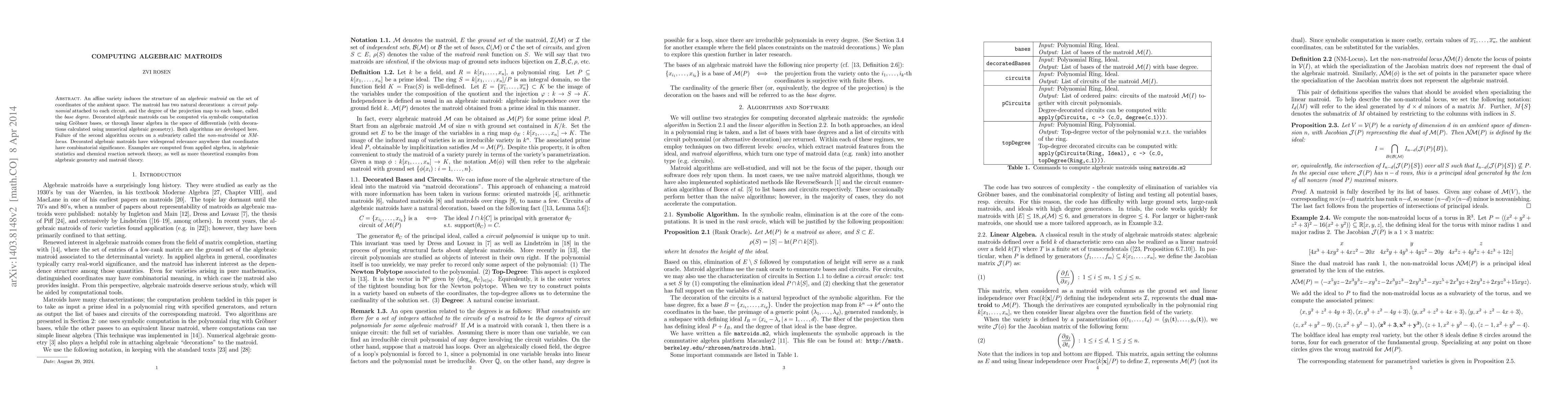 This paper develops algorithms for computing decorated algebraic matroids induced by affine varieties, using symbolic computation and linear algebra. It identifies the non-matroidal locus where the second algorithm fails and demonstrates applications in algebraic statistics, chemical reaction networks, and theoretical algebraic geometry.