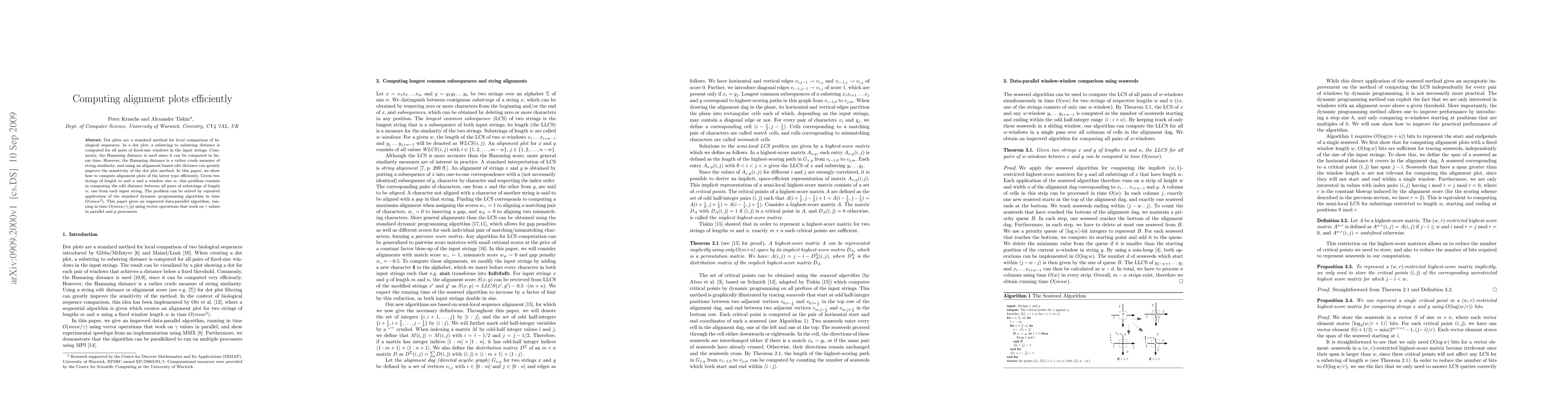 Dot plots are a standard method for local comparison of biological sequences. In a dot plot, a substring to substring distance is computed for all pairs of fixed-size windows in the input strings. Commonly, the Hamming distance is used since it can be computed in linear time. However, the Hamming distance is a rather crude measure of string similarity, and using an alignment-based edit distance can greatly improve the sensitivity of the dot plot method. In this paper, we show how to compute alignment plots of the latter type efficiently. Given two strings of length m and n and a window size w, this problem consists in computing the edit distance between all pairs of substrings of length w, one from each input string. The problem can be solved by repeated application of the standard dynamic programming algorithm in time O(mnw^2). This paper gives an improved data-parallel algorithm, running in time $O(mnw/\gamma/p)$ using vector operations that work on $\gamma$ values in parallel and $p$ processors. We show experimental results from an implementation of this algorithm, which uses Intel's MMX/SSE instructions for vector parallelism and MPI for coarse-grained parallelism.