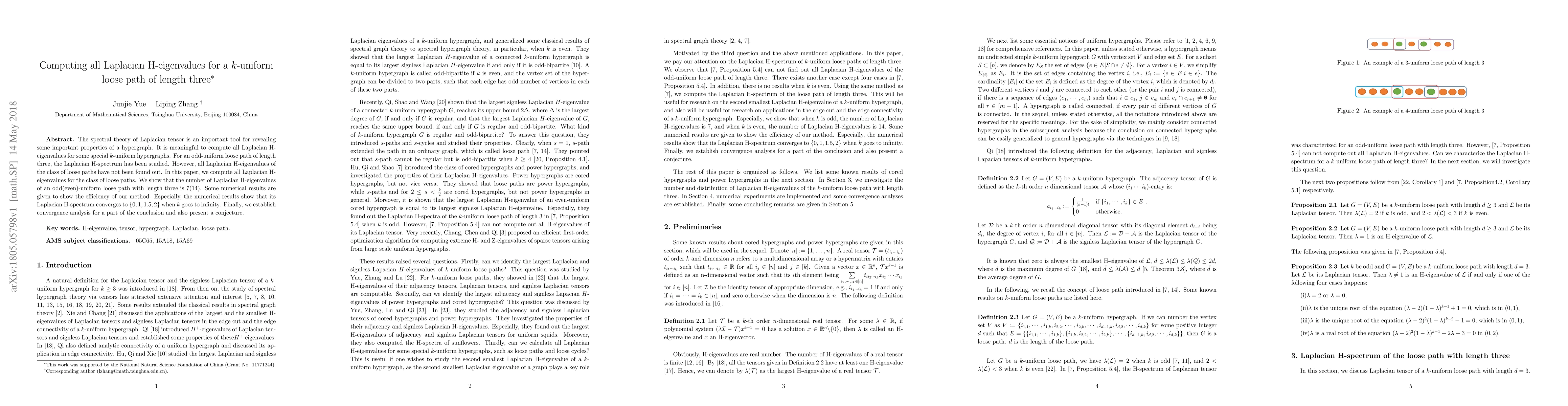 This paper computes all Laplacian H-eigenvalues for a k-uniform loose path of length three, revealing that the number of eigenvalues is 7 for odd k and 14 for even k. It also presents numerical results showing convergence to a specific spectrum as k approaches infinity.