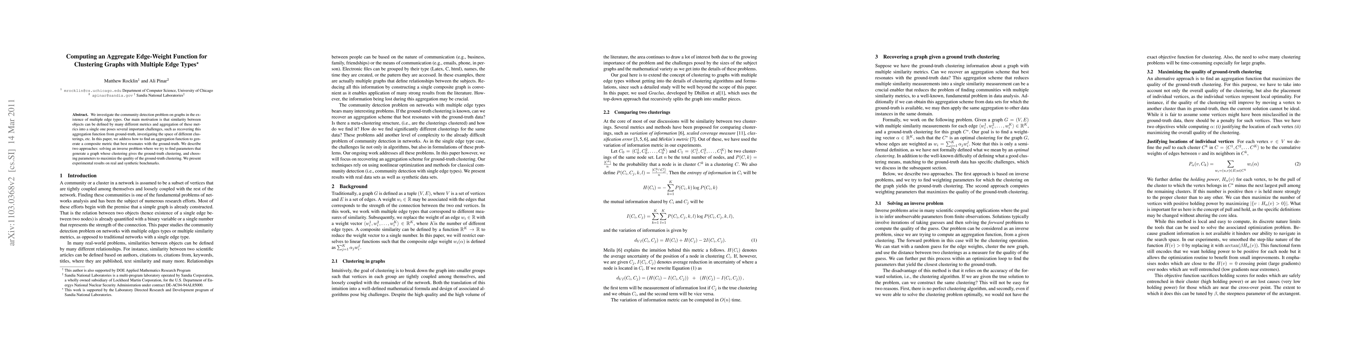 We investigate the community detection problem on graphs in the existence of multiple edge types. Our main motivation is that similarity between objects can be defined by many different metrics and aggregation of these metrics into a single one poses several important challenges, such as recovering this aggregation function from ground-truth, investigating the space of different clusterings, etc. In this paper, we address how to find an aggregation function to generate a composite metric that best resonates with the ground-truth. We describe two approaches: solving an inverse problem where we try to find parameters that generate a graph whose clustering gives the ground-truth clustering, and choosing parameters to maximize the quality of the ground-truth clustering. We present experimental results on real and synthetic benchmarks.