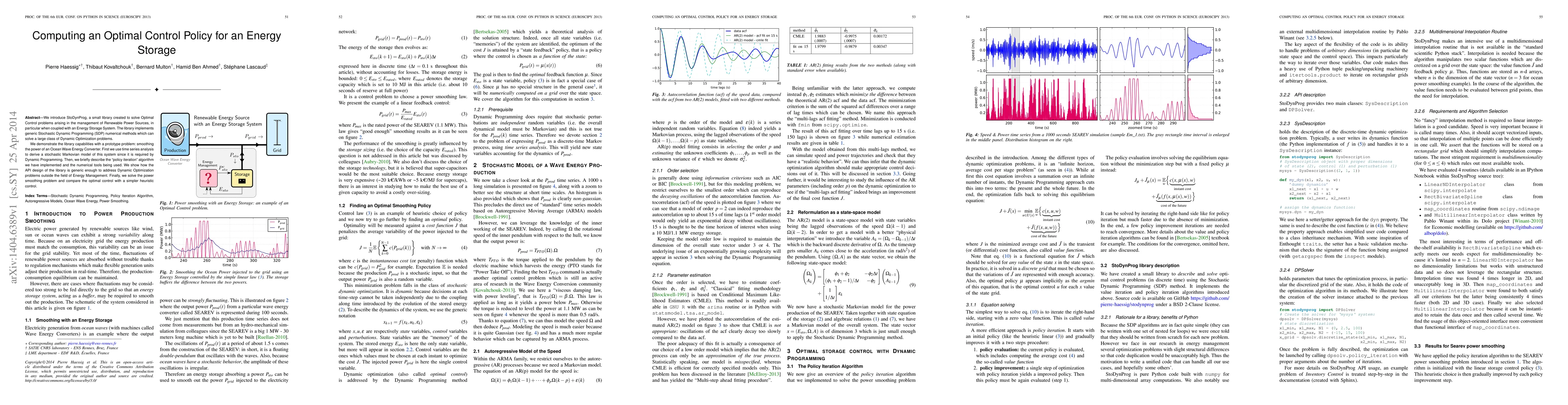 We introduce StoDynProg, a small library created to solve Optimal Control problems arising in the management of Renewable Power Sources, in particular when coupled with an Energy Storage System. The library implements generic Stochastic Dynamic Programming (SDP) numerical methods which can solve a large class of Dynamic Optimization problems. We demonstrate the library capabilities with a prototype problem: smoothing the power of an Ocean Wave Energy Converter. First we use time series analysis to derive a stochastic Markovian model of this system since it is required by Dynamic Programming. Then, we briefly describe the "policy iteration" algorithm we have implemented and the numerical tools being used. We show how the API design of the library is generic enough to address Dynamic Optimization problems outside the field of Energy Management. Finally, we solve the power smoothing problem and compare the optimal control with a simpler heuristic control.