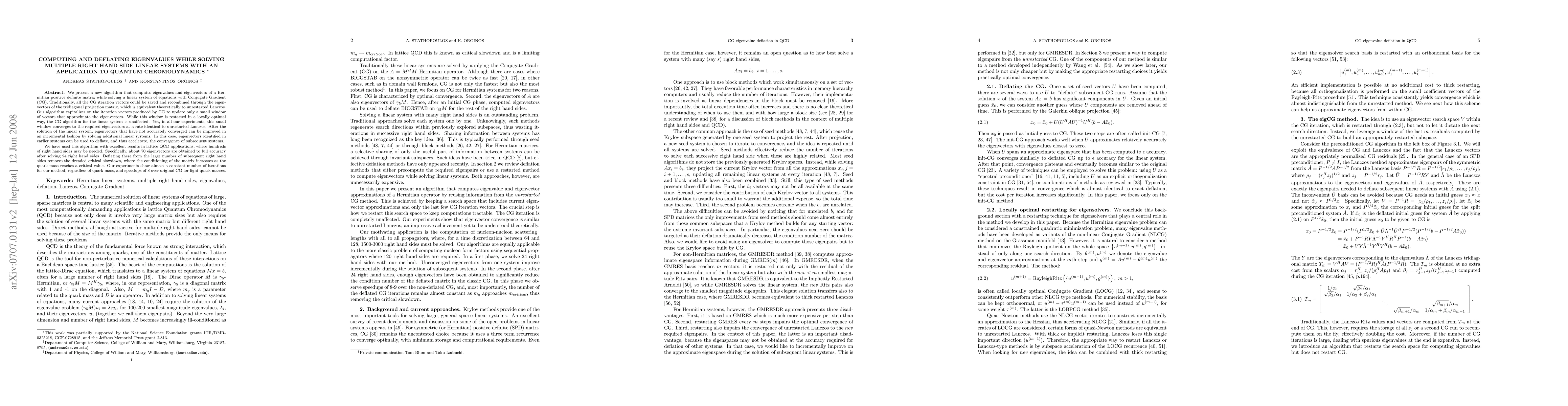 This paper introduces a novel algorithm that computes eigenvalues and eigenvectors while solving multiple linear systems using the Conjugate Gradient method. It leverages iteration vectors to update a small window of vectors, achieving convergence rates comparable to unrestarted Lanczos, and uses deflation techniques to accelerate subsequent systems, significantly improving performance in lattice QCD applications.