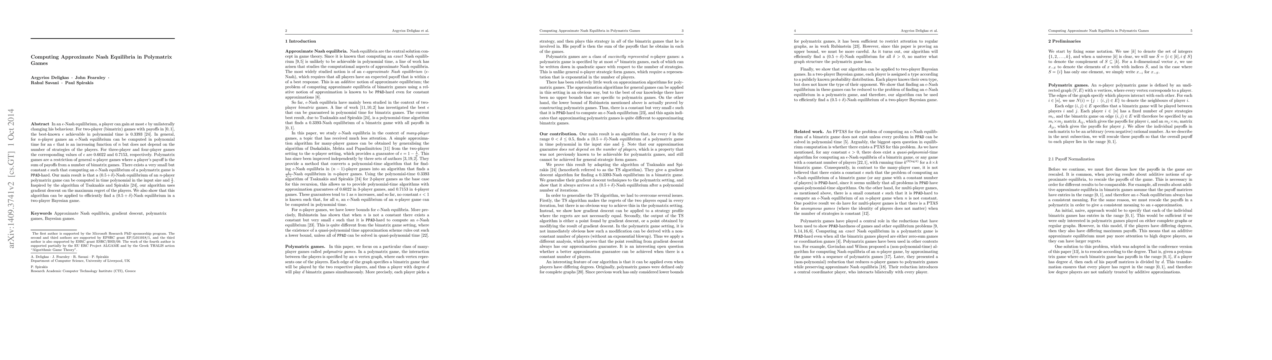 In an $\epsilon$-Nash equilibrium, a player can gain at most $\epsilon$ by unilaterally changing his behaviour. For two-player (bimatrix) games with payoffs in $[0,1]$, the best-known$\epsilon$ achievable in polynomial time is 0.3393. In general, for $n$-player games an $\epsilon$-Nash equilibrium can be computed in polynomial time for an $\epsilon$ that is an increasing function of $n$ but does not depend on the number of strategies of the players. For three-player and four-player games the corresponding values of $\epsilon$ are 0.6022 and 0.7153, respectively. Polymatrix games are a restriction of general $n$-player games where a player's payoff is the sum of payoffs from a number of bimatrix games. There exists a very small but constant $\epsilon$ such that computing an $\epsilon$-Nash equilibrium of a polymatrix game is \PPAD-hard. Our main result is that a $(0.5+\delta)$-Nash equilibrium of an $n$-player polymatrix game can be computed in time polynomial in the input size and $\frac{1}{\delta}$. Inspired by the algorithm of Tsaknakis and Spirakis, our algorithm uses gradient descent on the maximum regret of the players. We also show that this algorithm can be applied to efficiently find a $(0.5+\delta)$-Nash equilibrium in a two-player Bayesian game.