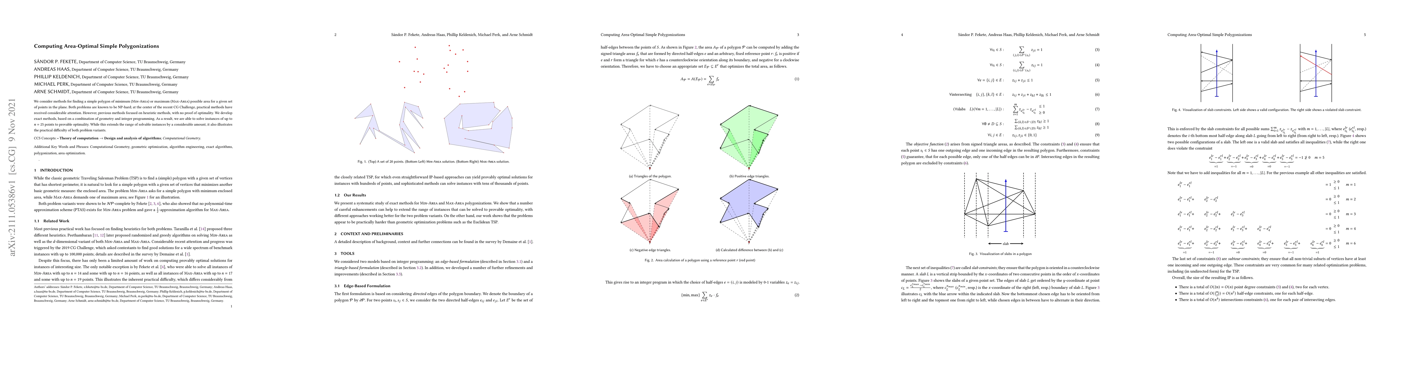 Researchers developed exact methods to find simple polygonizations with minimum or maximum area for a given set of points, solving instances up to 25 points with provable optimality.