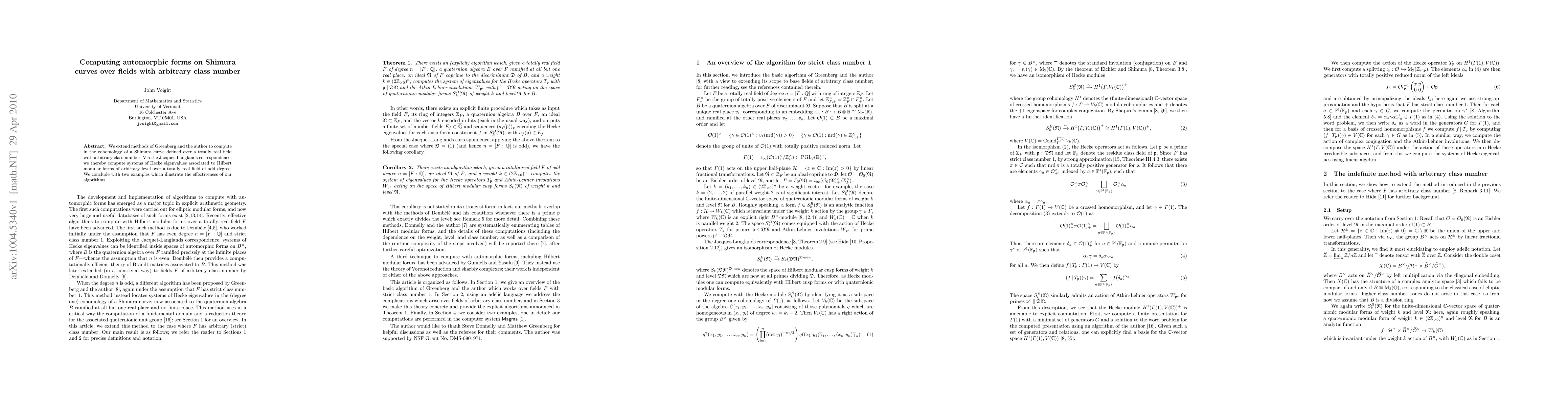 We extend methods of Greenberg and the author to compute in the cohomology of a Shimura curve defined over a totally real field with arbitrary class number. Via the Jacquet-Langlands correspondence, we thereby compute systems of Hecke eigenvalues associated to Hilbert modular forms of arbitrary level over a totally real field of odd degree. We conclude with two examples which illustrate the effectiveness of our algorithms.