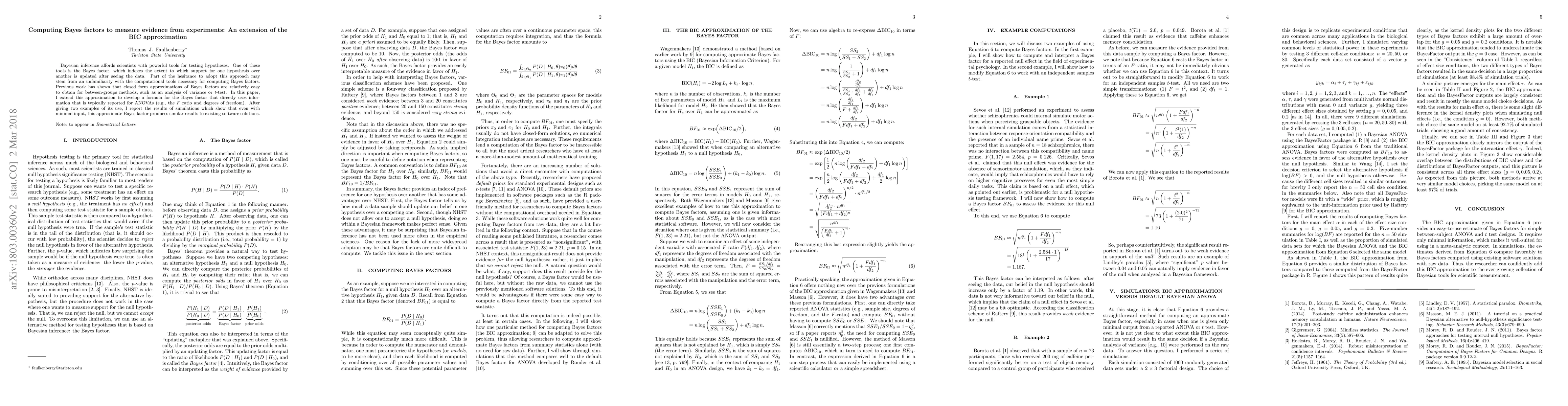 Researchers developed a new formula for computing Bayes factors using information from ANOVA results, showing it produces similar results to existing software solutions in simulations.
